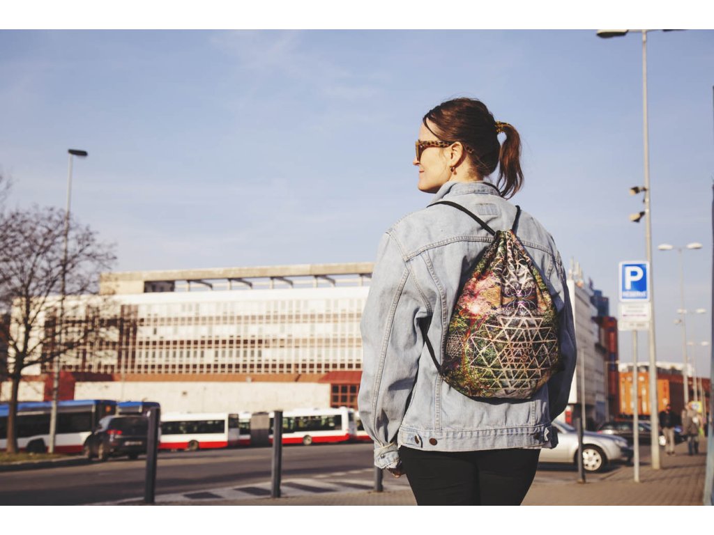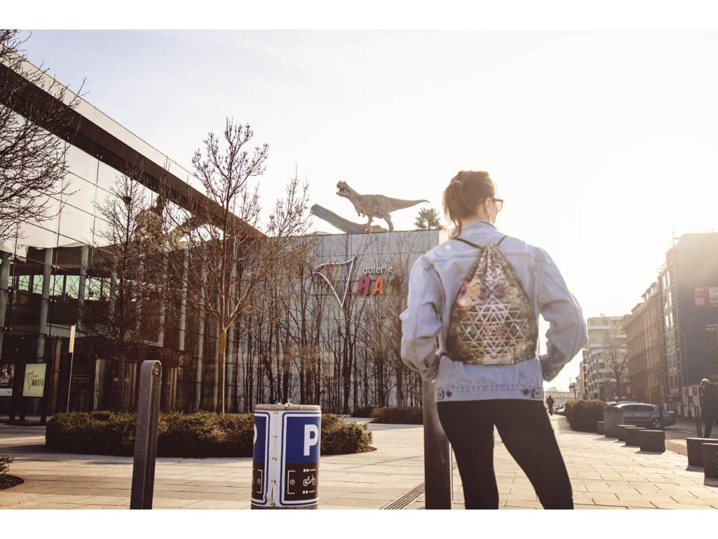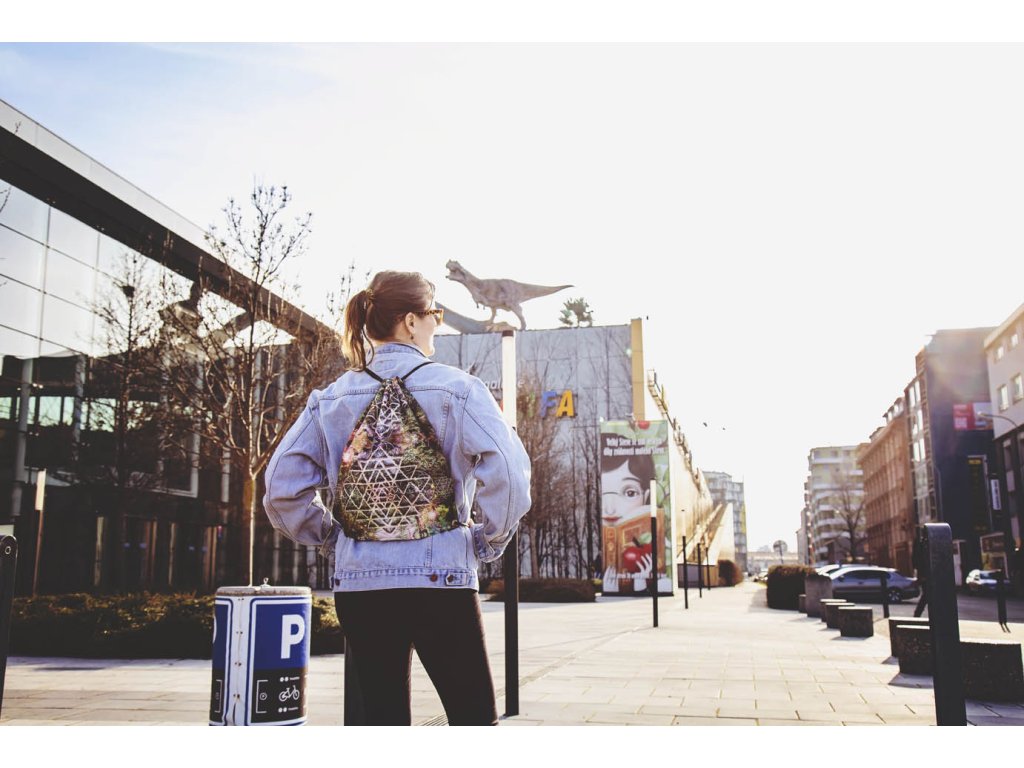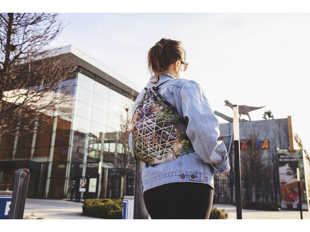 Batoh Lesní šrí jantra Jamar batůžky jsou naprosto výjimečné, protože jsou ušité z látky potištěné originální mandalou. Tyto mandaly vznikají jako umělecké fotokoláže propojením genia loci místa, magické síly předmětů a symbolů posvátné geometrie. Každá mandala je specifickým zářičem s blahodárnými účinky. Tato mandala Lesní šrí jantra obsahuje symboly Šrí jantra a Semeno života. Šrí jantra představuje univerzální lásku, božskou harmonii, moudrost a mír. Funguje jako ochrana před negativními energiemi, napomáhá k udržení fyzického i psychického zdraví. Posiluje sebeovládání, vytrvalost a klid, usměrňuje city a tužby. Semeno života je symbolem začátku stvoření. Je složeno ze sedmi kružnic. Kružnice jsou položeny tak, aby jejich středy ležely na průsečíku první kružnice a jakékoliv další kružnice. Kružnic je celkem sedm, protože každá z nich je symbolem pro každý jeden den stvoření světa. V tomto semeni je také schován celý strom života – jeho kořeny, kmen, větve i květy. Mandaly pro Jamar navrhuje Markéta - fotografka a výtvarnice (www.marben.name) Batůžky pro Jamar šije Radka – oděvní návrhářka a majitelka salónu www.duhova-vila.cz/na-prodej/. Rozměry: Cca 35 x44 cm Materiál: Mikropeach (PES 100%) gramáž 120 g/m2. Látka má certifikát Öko-Tex. Tisk ekologickými vodou ředitelnými barvami.Doplňkové parametry