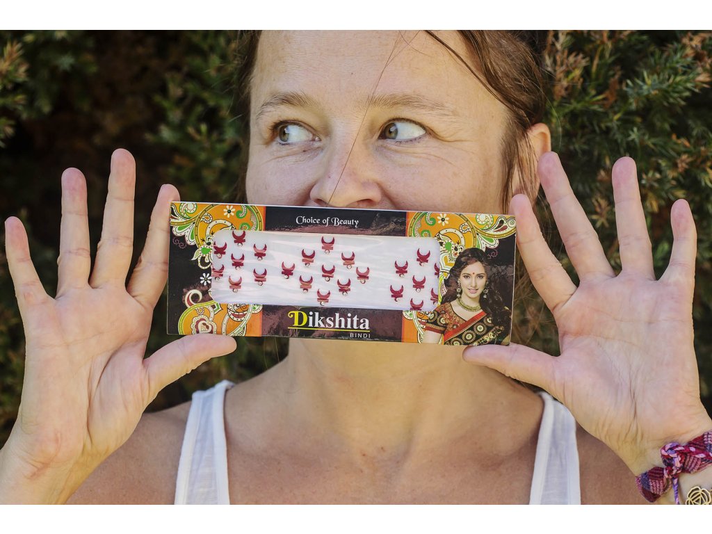 Bindi Šivova luna s kamínkem Chcete-li aktivovat a ochránit své třetí oko, pořiďte si indické bindi Šivova lun s kamínkem, které je kromě této funkce i originální ozdobou. Platíčko obsahuje přes 20 bindi.Doplňkové parametry