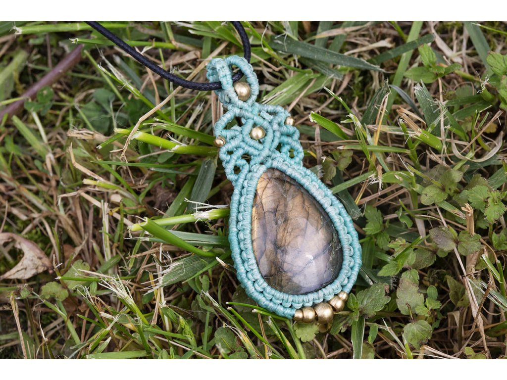Macramé přívěsek s labradoritem Labradorit