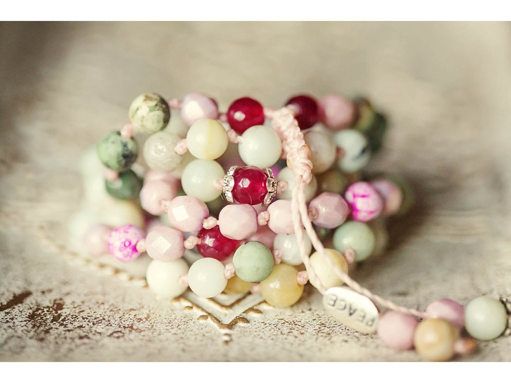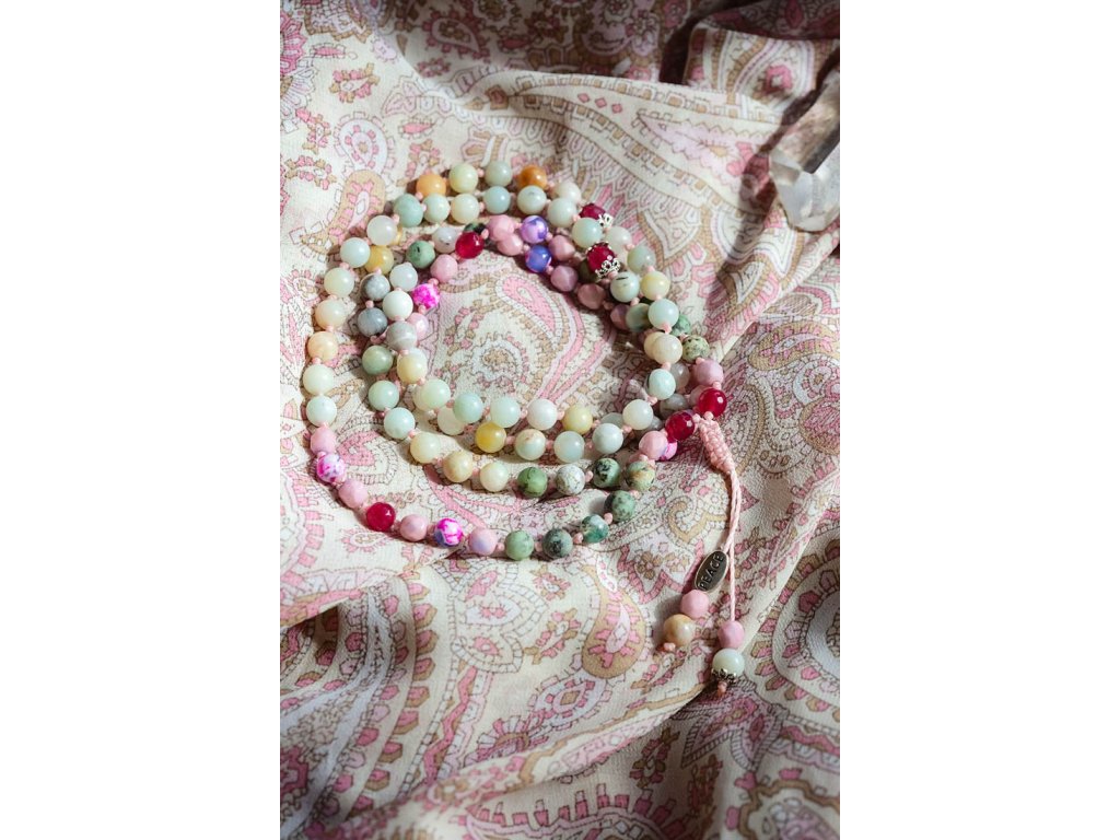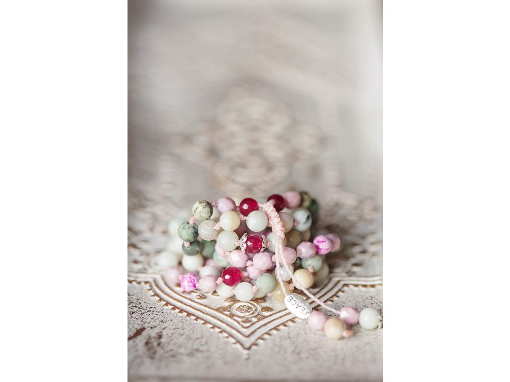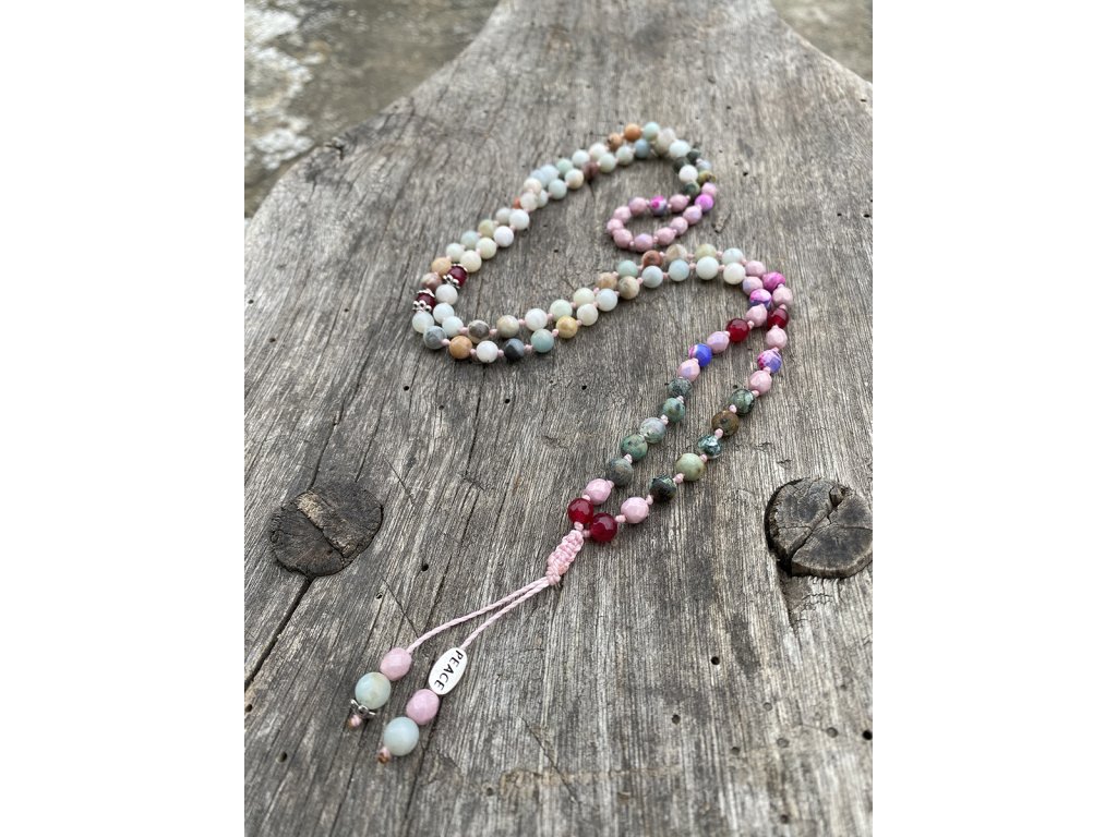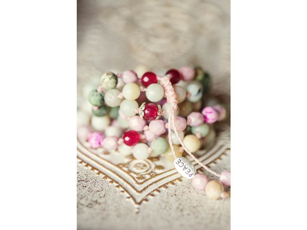 Mála 108 Peace Představujeme vám nový kousek z kolekce mál 108, které jsou vytvořeny z mnoha druhů drahokamů! Tato mála 108 Peace je vyrobena z amazonitu, achátu, rubínu, tyrkysu afrického a skleněných ohnivých korálků. Na zakončení najdete i unikátní kovový korálek s nápisem Peace. Průměr korálků je 6 mm a obvod mály je cca 86 cm. Můžete ji používat jako pomůcku při meditaci, modlitbách nebo jako osobní šperk a náhrdelník s ochranou a podporou míru. Vlastnosti drahokamů: Amazonit: Podporuje klid, mír a harmonii. Pomáhá spojit se s přírodou a uzemnit se. Achát: Podporuje stabilitu, klid a vnitřní sílu. Dodává odvahu a sebevědomí. Rubín: Podporuje vášeň, lásku a vitalitu. Dodává sílu a odvahu. Tyrkys africký: Podporuje ochranu, štěstí a intuici. Pomáhá komunikovat s duchovním světem. Skleněné ohnivé korálky: Symbolizují oheň, vášeň a vitalitu. Dodávají energii a motivaci. Mála 108 Peace je: Ručně vyrobena s láskou Dodávaná v dárkové krabičce Perfektní dárek pro sebe i pro milovnice mál 108, drahokamů a duchovních praktik Symbol krásy, harmonie, ochrany a duchovní síly Tip: Mála 108 Peace skvěle doplní oblečení ve stylu boho, ale také se hodí k běžnému oblečení pro dodání nádechu spirituality a elegance. Proč si vybrat tuto málu? Podporujete ruční práci a lokální řemeslo. Vlastníte originální a jedinečný kousek. Nosíte šperk s hlubokou symbolikou a duchovním významem. Kupujete si dárek vyrobený s láskou a péčí. Ozdobte se málou 108 Peace, šperkem, který vám pomůže na cestě k vnitřnímu míru a harmonizaci.Doplňkové parametry