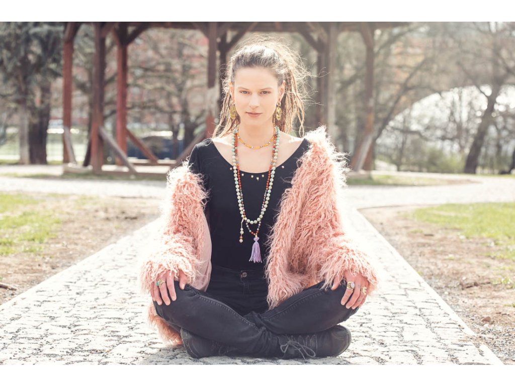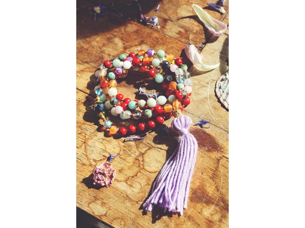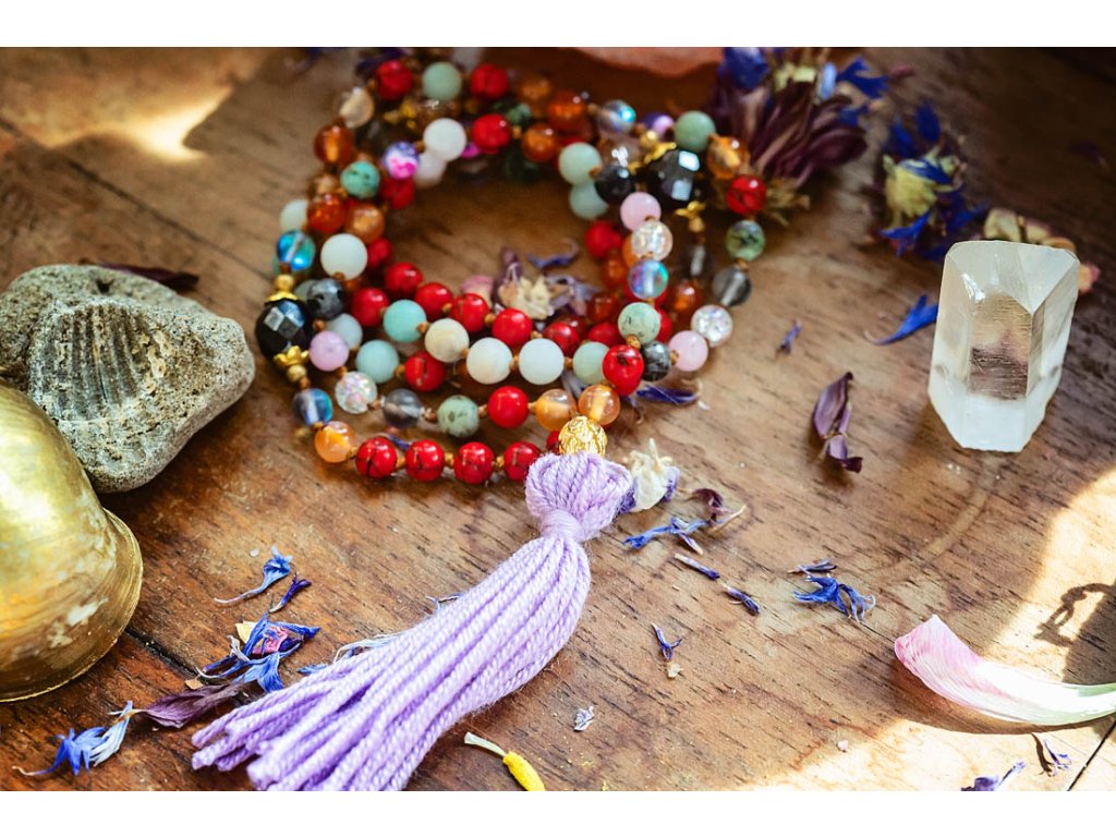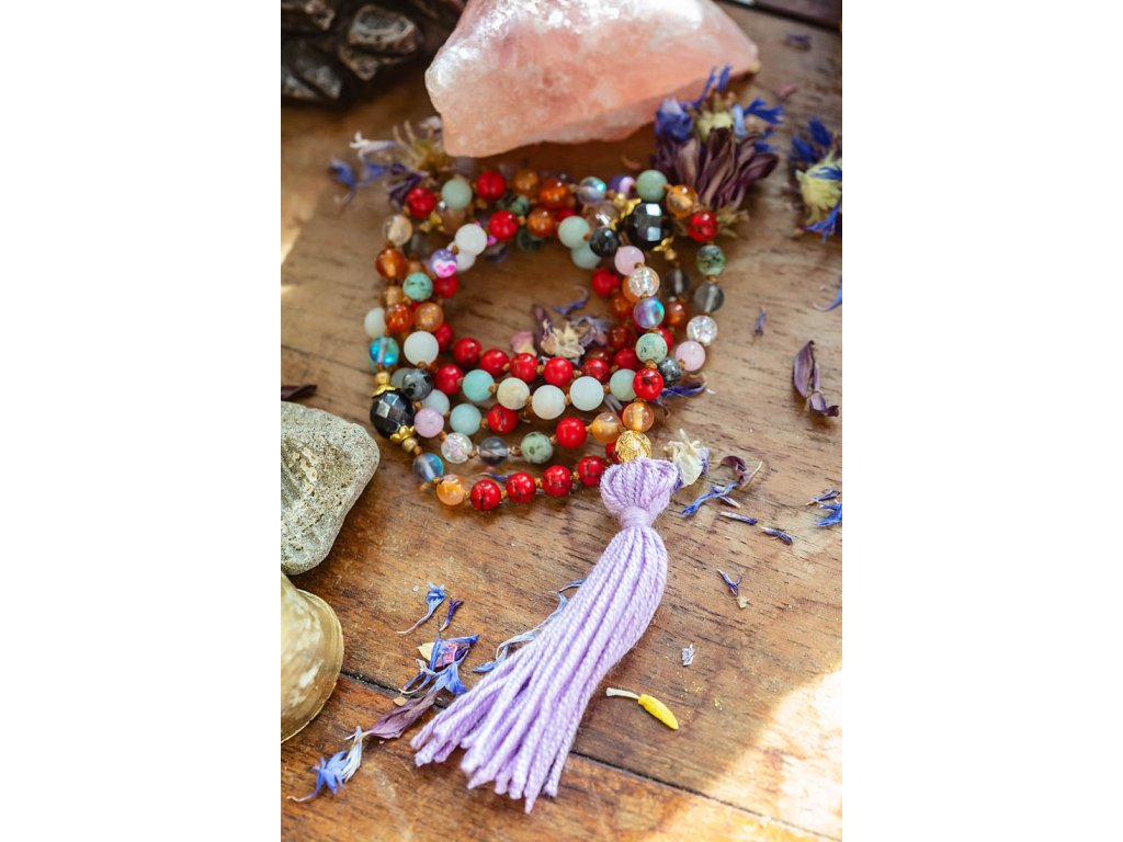 Mála 108 se střapcem Představujeme vám nový kousek z kolekce mál 108, které jsou vytvořeny z mnoha druhů drahokamů! Tato mála 108 se střapcem je vyrobena z červeného tyrkysu, karneolu, amazonitu, achátu, růženínu, tyrkysu afrického, křišťálu, labradoritu a skleněných ohnivých korálků. Průměr korálků je 6 mm a obvod mály je cca 86 cm. Můžete ji používat jako pomůcku při zpívaní nebo odříkávání manter, ale také jako osobní šperk a náhrdelník s ochranou umocněnou vlivy drahokamů. Vlastnosti drahokamů: Červený tyrkys: Podporuje energii, vitalitu a vášeň. Pomáhá překonávat překážky a dodává odvahu. Karneol: Podporuje kreativitu, hojnost a štěstí. Dodává odhodlání a motivaci. Amazonit: Podporuje klid, mír a harmonii. Pomáhá spojit se s přírodou a uzemnit se. Achát: Podporuje stabilitu, klid a vnitřní sílu. Dodává odvahu a sebevědomí. Růženín: Podporuje lásku, něhu a sebelásku. Pomáhá otevírat srdce a harmonizovat emoce. Tyrkys africký: Podporuje ochranu, štěstí a intuici. Pomáhá komunikovat s duchovním světem. Křišťál: Podporuje čistotu, jasnost a harmonizaci energie. Pomáhá soustředit se a posílit intuici. Labradorit: Podporuje transformaci, intuici a vnímání. Pomáhá otevírat mysl a posilovat duchovní sílu. Skleněné ohnivé korálky: Symbolizují oheň, vášeň a vitalitu. Dodávají energii a motivaci. Tato mála je: Ručně vyrobena s láskou Dodávaná v dárkové krabičce Perfektní dárek pro sebe i pro milovnice mál 108, drahokamů a duchovních praktik Symbol krásy, harmonie, ochrany a duchovní síly Tip: Mála 108 skvěle doplní oblečení ve stylu boho, ale také se hodí k běžnému oblečení pro dodání nádechu spirituality a elegance. Proč si vybrat naši Málu 108 se střapcem? Podporujete ruční práci a lokální řemeslo. Vlastníte originální a jedinečný kousek. Nosíte šperk s hlubokou symbolikou a duchovním významem. Kupujete si dárek vyrobený s láskou a péčí. Ozdobte se šperkem, který vám pomůže na cestě k duchovnímu růstu a harmonizaci!Doplňkové parametry