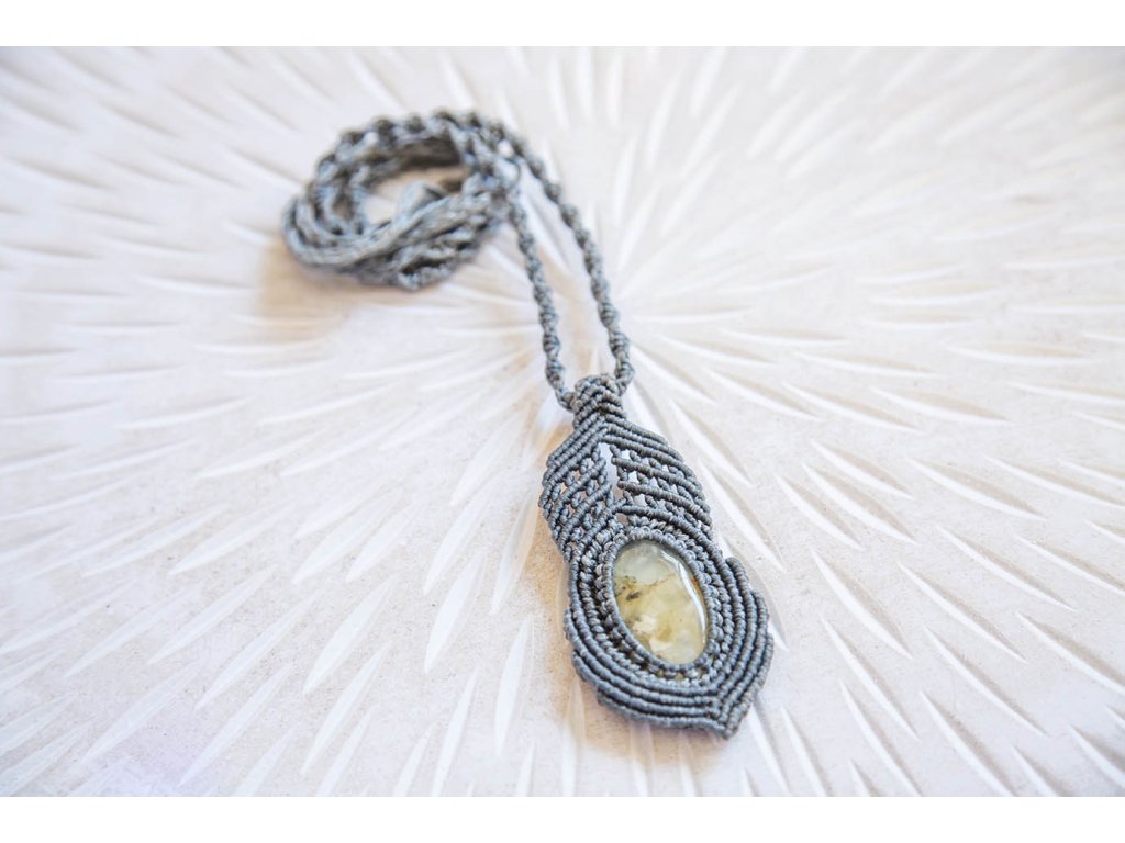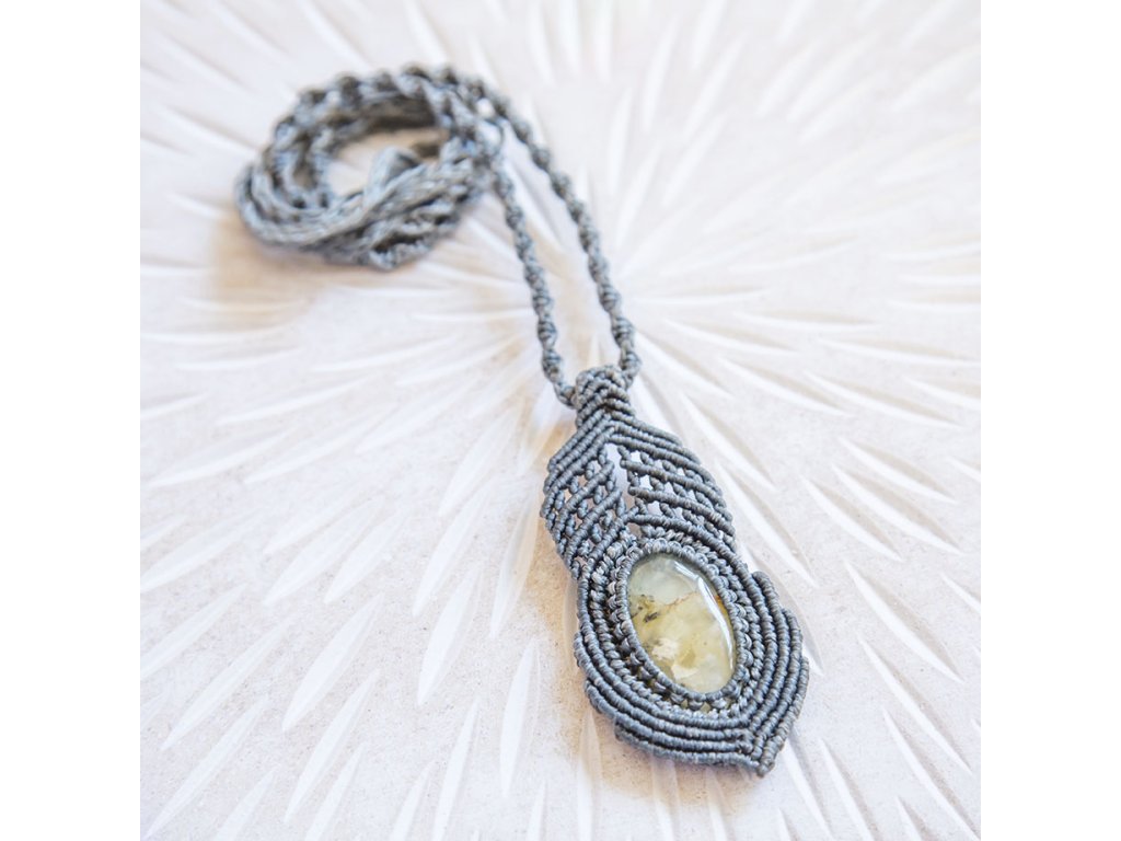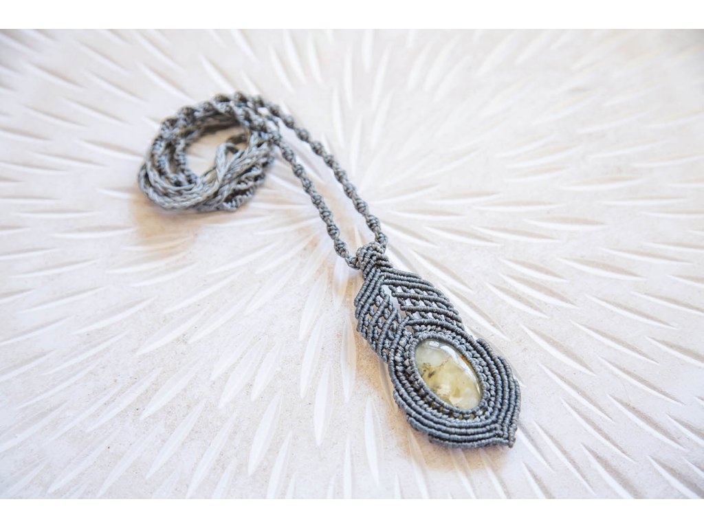 Náhrdelník s lodolitem Krásný kámen lodolit v macramé náhrdelníku. Každý šperk macramé je ručně vyrobený jedinečný originál. Lodolit je křišťál s inkluzemi. Často se o něm píše jako o „scénickém“ křišťálu, neboť inkluze různých minerálů v tomto křišťálu připomínají pohled oknem zelené zahrady či navozují obrazy vzdálených galaxií nebo podmořských korálových útesů. Odtud nese též označení „kámen zahrad“. A aby těch názvů tohoto nádherného kamene nebylo málo, často bývá nazýván „šamanským kamenem“, protože právě tento druh křišťálu mnozí léčitelé používají k navození vizionářské zkušenosti a pomoci při léčbě nemocí. Rozměr kamene cca 20 x 35 mm Délka nastavitelná.Doplňkové parametry