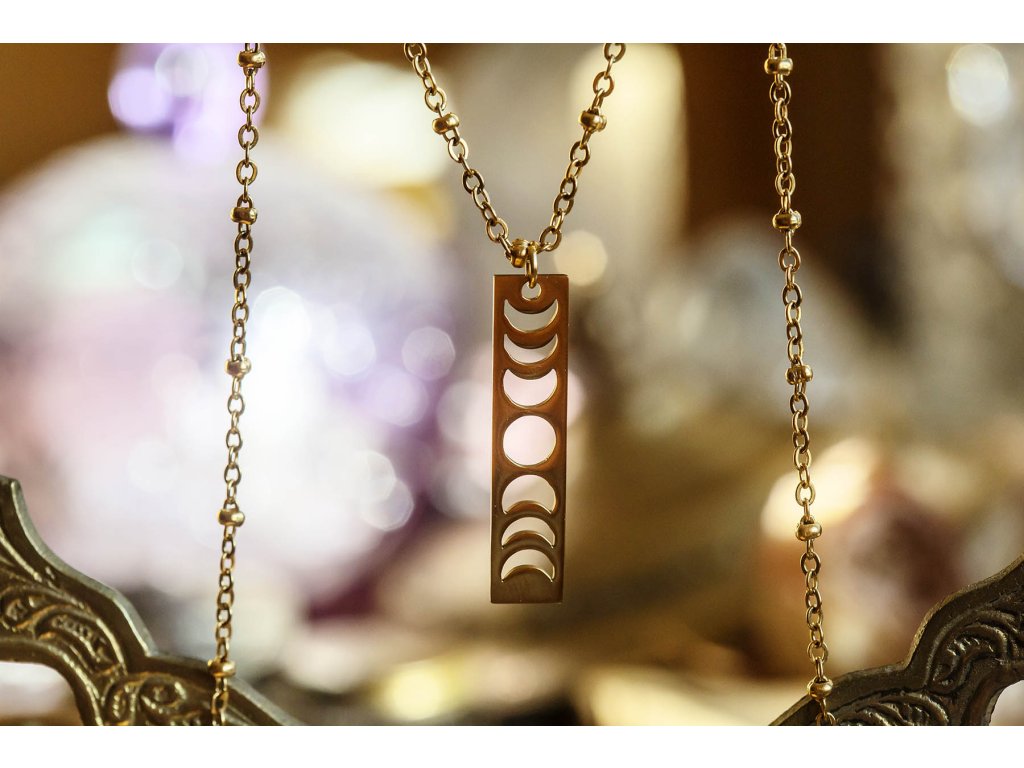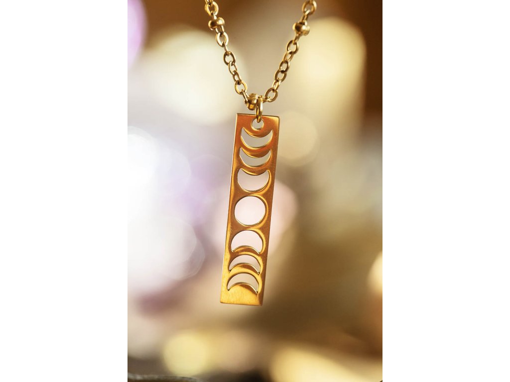 Náhrdelník fáze luny Náhrdelník fáze luny z nerezové oceli ve zlaté barvě je pro podporu vašeho cyklu a je skvělým dárkem pro každou ženu. Obvod cca 46 cm Náušnice fáze luny najdete zde.Doplňkové parametry