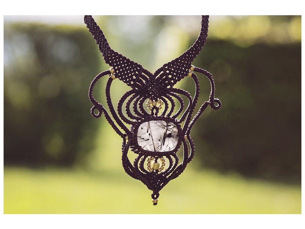 Náhrdelník macramé s turmalínem v křišťálu Křišťál v tomto náhrdelníku disponuje silně očistnou energií. Ve spojení s turmalínem v sobě umocňuje vlastnosti ochránce všech dobrodějných čarodějek. Každý šperk macramé je originální jedinečný ručně vyrobený kus. Křišťál s turmalínem spojuje v jednom krystalu vlastnosti obou kamenů. Účinně posiluje energii a odklání škodlivé vlivy prostředí. Uvolňuje napětí a harmonizuje tělo i duši. Negativní energie a myšlenky mění v pozitivní. Křišťál s turmalínem též pomáhá při řešení a odstraňování problémů. Potlačuje sklony škodit sám sobě. Harmonizuje meridiány. Délka: Nastavitelná Rozměr kamene: cca 3,5 x 2,5 cmDoplňkové parametry