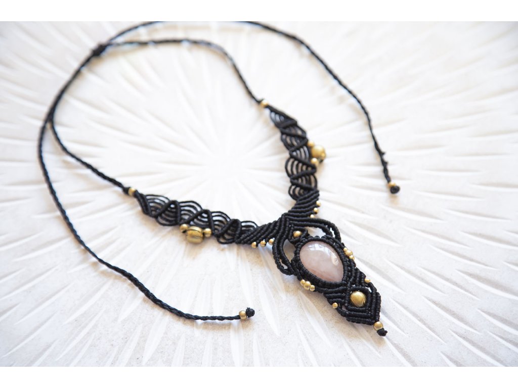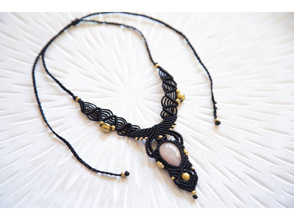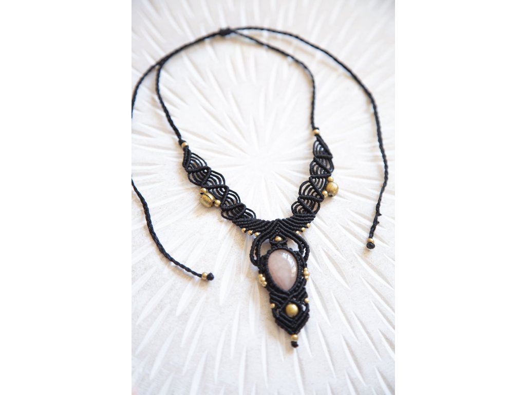 Náhrdelník s růženínem Umně vytvořené tvary macramé šperků obklopují blahodárné drahokamy rozličného působení a ve své organické něze sluší všem vílám zamilovaných do této země. Každý šperk macramé je originální jedinečný ručně vyrobený kus. Růženín je kámen lásky. Pomáhá projevovat city, dodává lásku a krásu, podporuje něžnost, mírnost, přátelskost a nesobeckost. Podněcuje citlivost a vnímavost vůči ostatním i sobě samému, podporuje fantazii, inspiraci a tvořivost a trpělivost. Dává sílu k odpuštění, učí sebeúctě a sebelásce. Délka: Nastavitelná Rozměr kamene: cca 1,5 x 2,5 cmDoplňkové parametry