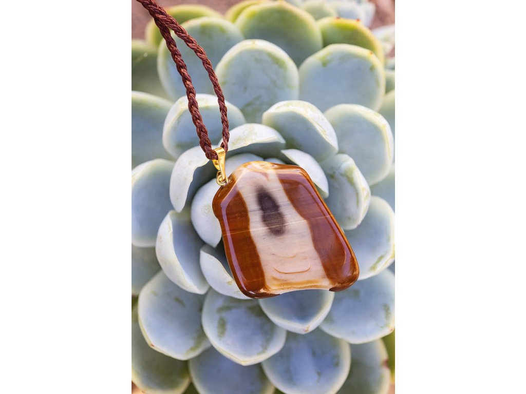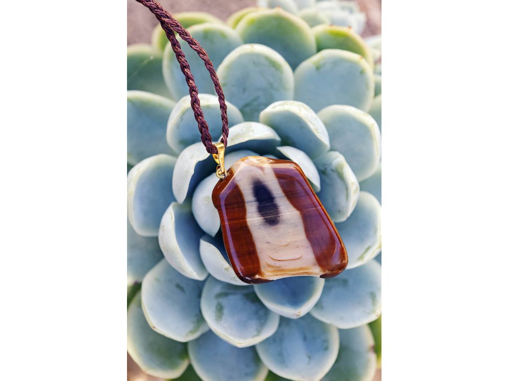 Náhrdelník tygří oko Překrásný výrazný přívěsek tygří oko na macramé šňůrce tvoří nevšední náhrdelník. Tygří oko je ochranný kámen, která se používá jako talisman před všemi formami nebezpečí. Propojuje sluneční a zemskou energii a tím pomáhá uzemnit lidi, kteří ztratili spojení s realitou a zároveň podporuje duchovní růst těch materialisticky zaměřených. Je to hřejivý kámen, podporuje to energie v těle a dodává sílu, přitahuje peníze a prosperitu. Pomáhá s odbouráním závislostí na druhých uznáním vlastní hodnoty. Mírní deprese. Rozměry kamene cca 3 x 4 cm Hmotnost: 15 g Délka nastavitelná pomocí macramé zámečku.Doplňkové parametry