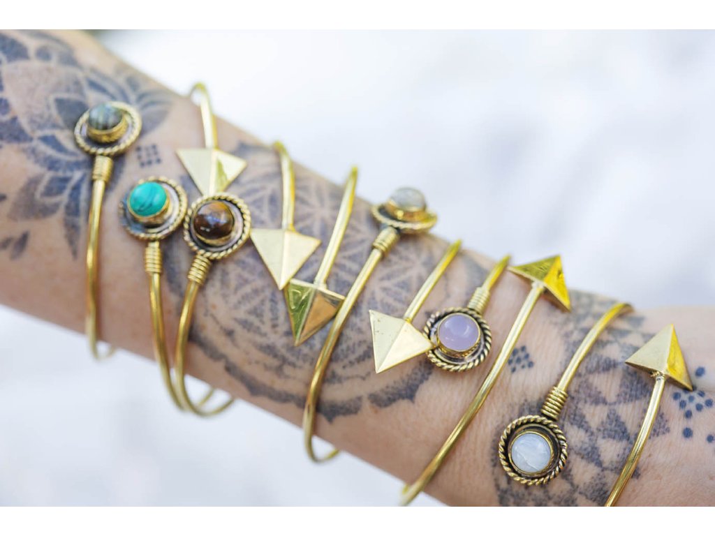 Náramek drahokam a šipka Mosazný náramek s šipkou a drahokamem. Na výběr je: Labradorit je vhodný pro bytost, která je připravená ukázat světu své skryté hlubiny. Vynáší na povrch to, co před světem ukrýváme a osvobozuje naši osobnost od starých vzorců a zábran. Odložením zábran se navrací do života spontánnost a radost. Je to také ochranný kámen šamanů a mágů, aby nesešli z cesty při propojování různých dimenzí a světů, přináší světlo, které rozjasňuje tuto cestu. Měsíční kámen je uchvacující drahokam, který má silné magické účinky. Ochraňuje citlivé povahy a napomáhá vyrovnaným šťastným vztahům. Je považován za drahokam štěstí. Působí pozitivně na intuici, tvořivost a podpoří Vás v nových začátcích. Šperk s měsíčním kamenem by neměl chybět ve šperkovnici žádné ženy. Více o měsíčním kameni se dočtete na našem blogu. Tyrkys slouží jeho nositeli k tříbení a vyjadřování vlastních myšlenek, zesiluje intuici, vyrovnanost, podporuje úspěch. Také chrání auru a pohlcuje škodlivé vlivy a zahání zlé sny. Posiluje pozitivní energii. Ve vztahové rovině přináší štěstí a klid. Tygří oko je ochranný kámen, která se používá jako talisman před všemi formami nebezpečí. Propojuje sluneční a zemskou energii a tím pomáhá uzemnit lidi, kteří ztratili spojení s realitou a zároveň podporuje duchovní růst těch materialisticky zaměřených. Je to hřejivý kámen, podporuje to energie v těle a dodává sílu, přitahuje peníze a prosperitu. Pomáhá s odbouráním závislostí na druhých uznáním vlastní hodnoty. Mírní deprese. Růženín je kámen lásky. Pomáhá projevovat city, dodává lásku a krásu, podporuje něžnost, mírnost, přátelskost a nesobeckost. Podněcuje citlivost a vnímavost vůči ostatním i sobě samému, podporuje fantazii, inspiraci a tvořivost a trpělivost. Dává sílu k odpuštění, učí sebeúctě a sebelásce.Buďte první, kdo napíše příspěvek k této položce.