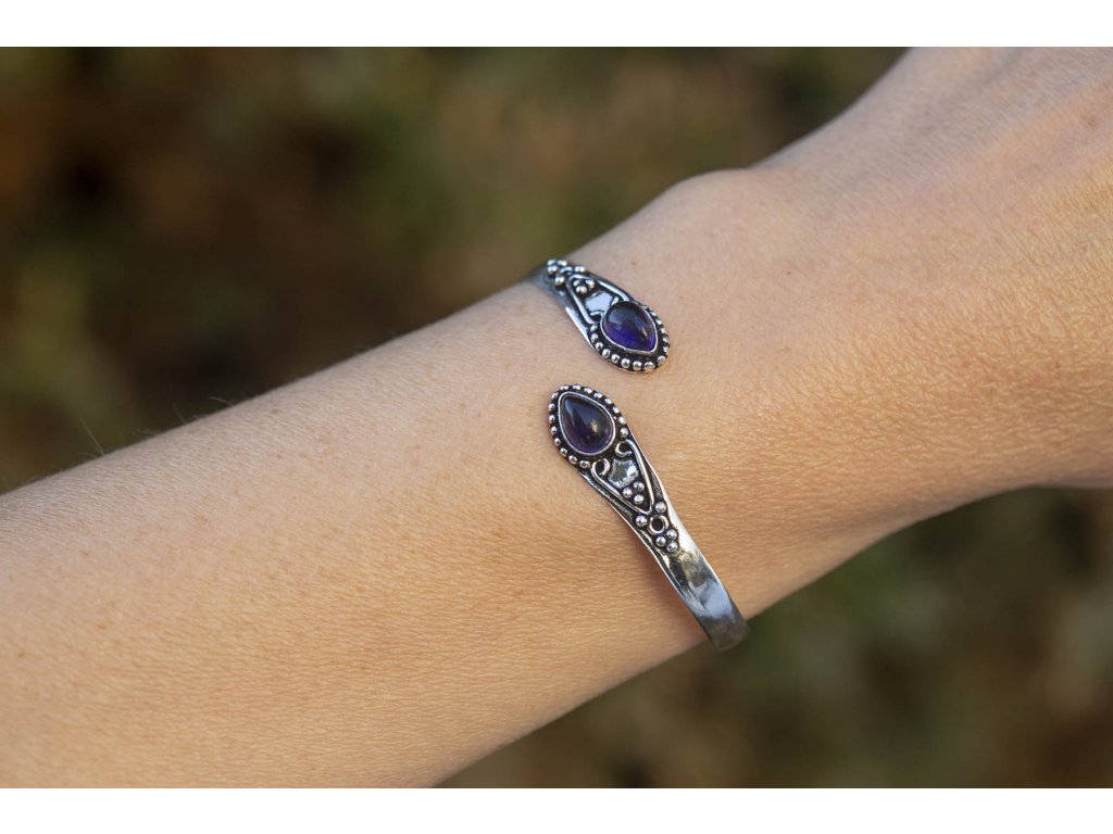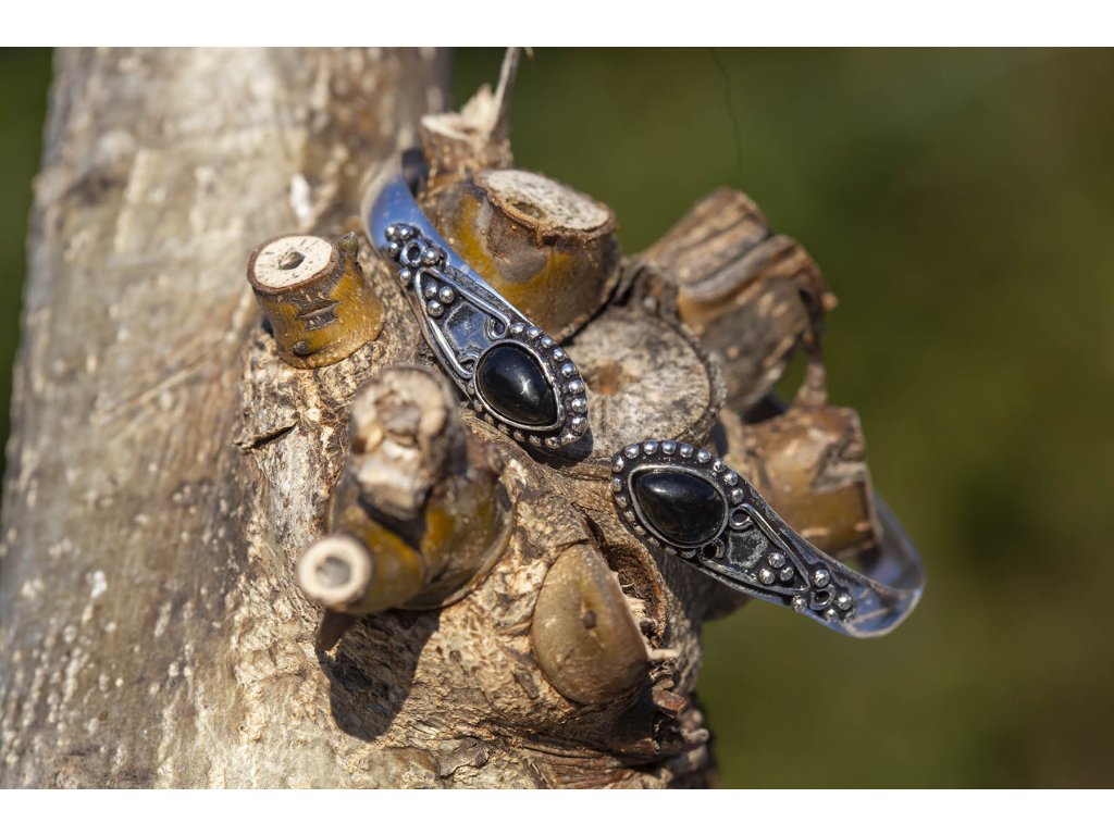 Náramek dva drahokamy Tento náramek s dvěma drahokamy v bílém kovu je krásnou ozdobou vaší ruky. Na výběr je černý onyx, fialový ametyst a hnědé tygří oko. Ametyst je kamenem čistoty ducha a meditace. Pomáhá nám v sobě objevovat sebeobětování, lásku, pokoru a nezištnost. Těmito vlastnostmi nám otevírá cestu do jiných dimenzí bytí. Je to kámen inspirace, směřuje naše myšlení k tvořivé práci a probouzí v nás intuici. Onyx je ochranný kámen, který odráží negativitu vědomě namířenou proti vám. Chrání život, dodává sílu, pomáhá v těžkých obdobích, při mimořádném fyzickém a citovém vypětí. Zaměřuje energii jedním směrem, přináší ráznost a vytrvalost, dovoluje svému nositeli stát se pánem svého osudu. Poskytuje poučení z minulosti, zvyšuje sebedůvěru a sebekontrolu, léčí stará traumata ovlivňující současný život a snižuje strach a obavy. Udržuje v těle rovnováhu energií jin a jang. Tygří oko je ochranný kámen, která se používá jako talisman před všemi formami nebezpečí. Propojuje sluneční a zemskou energii a tím pomáhá uzemnit lidi, kteří ztratili spojení s realitou a zároveň podporuje duchovní růst těch materialisticky zaměřených. Je to hřejivý kámen, podporuje to energie v těle a dodává sílu, přitahuje peníze a prosperitu. Pomáhá s odbouráním závislostí na druhých uznáním vlastní hodnoty. Mírní deprese.Buďte první, kdo napíše příspěvek k této položce.