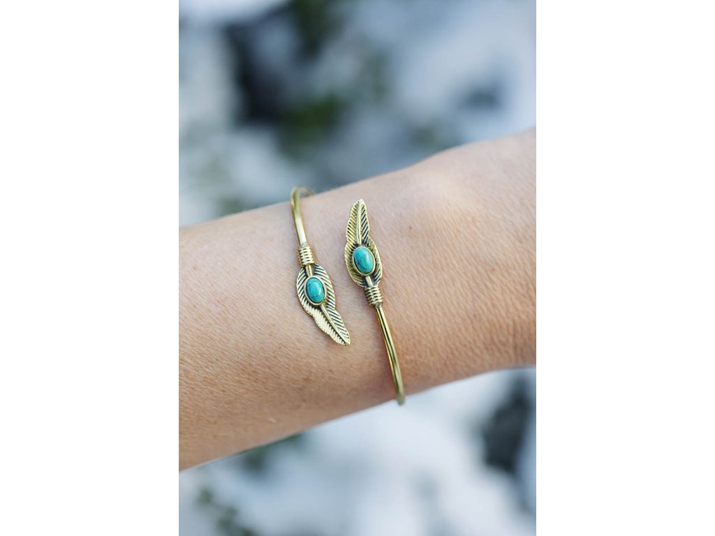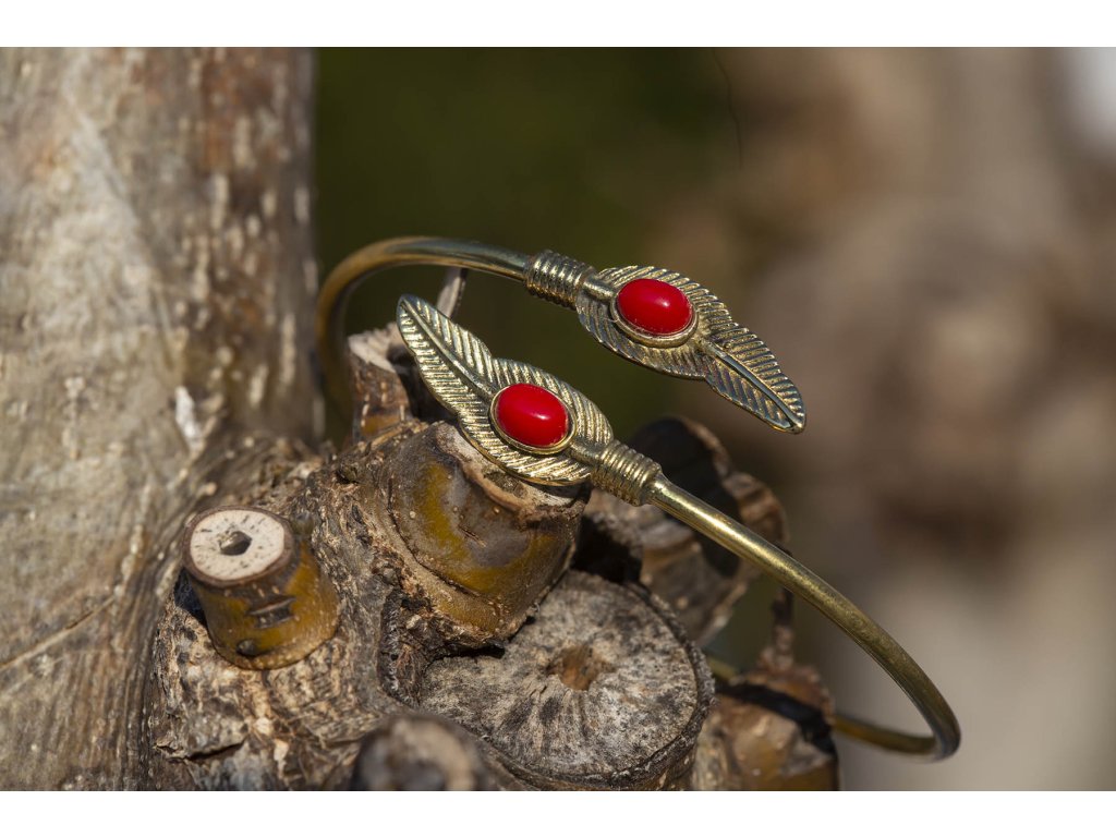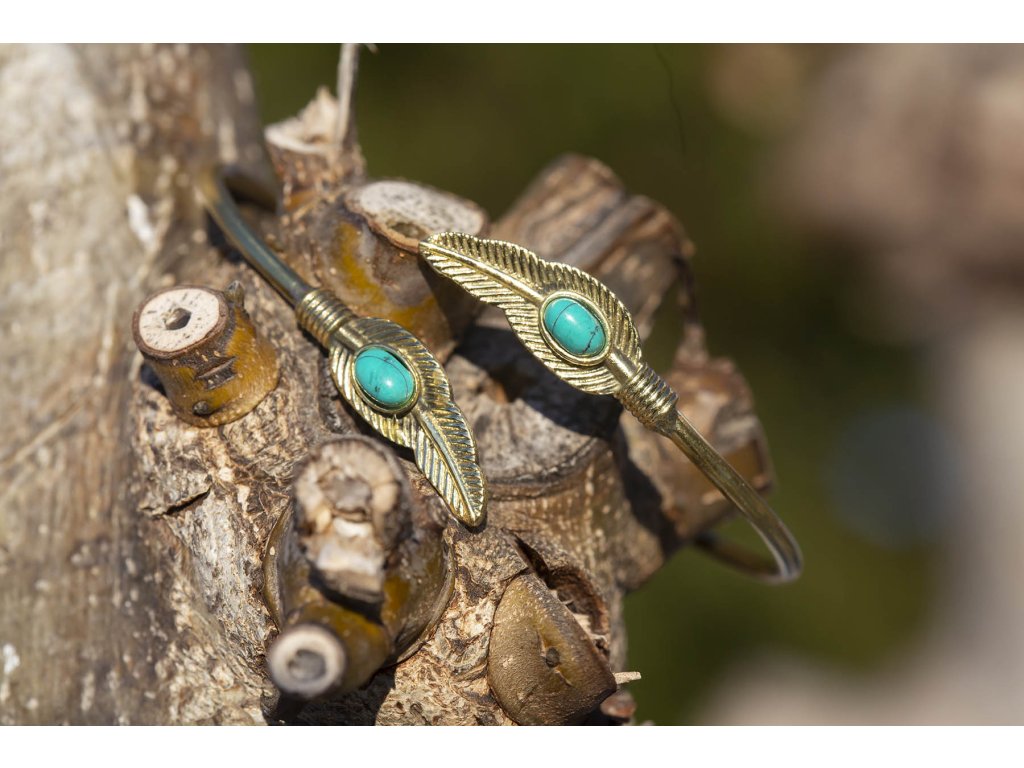 Náramek dvě pírka a drahokamy Krásný mosazný náramek dvě pírka s drahokamy. Na výběr je červený korál, hnědé tygří oko a zelený tyrkys. Korál je považován za nejsilnější ochranný kámen. Očisťuje nás od zatěžujících a temných myšlenek, negativních představ a pocitů. Povzbuzuje v nás pozitivní myšlení a cítění, zachovávání duševního řádu a čistoty. V barvě červené je symbolem lásky, oddanosti a pokory, soucitu a sounáležitosti s celkem. Je symbolem mateřství. Tygří oko je ochranný kámen, která se používá jako talisman před všemi formami nebezpečí. Propojuje sluneční a zemskou energii a tím pomáhá uzemnit lidi, kteří ztratili spojení s realitou a zároveň podporuje duchovní růst těch materialisticky zaměřených. Je to hřejivý kámen, podporuje to energie v těle a dodává sílu, přitahuje peníze a prosperitu. Pomáhá s odbouráním závislostí na druhých uznáním vlastní hodnoty. Mírní deprese. Tyrkys slouží jeho nositeli k tříbení a vyjadřování vlastních myšlenek, zesiluje intuici, vyrovnanost, podporuje úspěch. Také chrání auru a pohlcuje škodlivé vlivy a zahání zlé sny. Posiluje pozitivní energii. Ve vztahové rovině přináší štěstí a klid. Podobné náramky najdete zdeBuďte první, kdo napíše příspěvek k této položce.