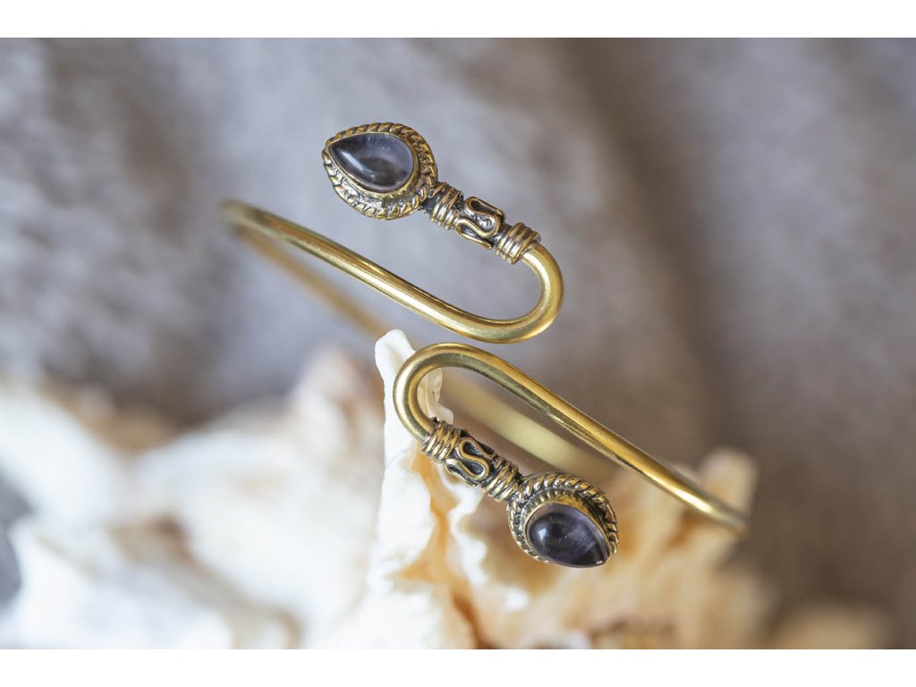 Náramek esíčko a dva kameny Překrásný mosazný náramek s dvěma drahokamy. Na výběr máme: Ametyst je kamenem čistoty ducha a meditace. Pomáhá nám v sobě objevovat sebeobětování, lásku, pokoru a nezištnost. Těmito vlastnostmi nám otevírá cestu do jiných dimenzí bytí. Je to kámen inspirace, směřuje naše myšlení k tvořivé práci a probouzí v nás intuici. Labradorit je vhodný pro bytost, která je připravená ukázat světu své skryté hlubiny. Vynáší na povrch to, co před světem ukrýváme a osvobozuje naši osobnost od starých vzorců a zábran. Odložením zábran se navrací do života spontánnost a radost. Je to také ochranný kámen šamanů a mágů, aby nesešli z cesty při propojování různých dimenzí a světů, přináší světlo, které rozjasňuje tuto cestu. Lapis lazuli je jedinečný drahokam, který pomáhá a podporuje svého nositele v mnoha ohledech. Navozuje vnitřní klid a mír, podporuje radost, odvahu, lásku, poctivost a kreativitu. Upevňuje mezilidské vztahy a zlepšuje komunikaci. Zvyšuje sebevědomí a podporuje osobní růst. Mírní strach, vztek a agresivitu. Má blahodárný vliv na paměť a úsudek. Dokáže odstraňovat stres a taky být velkým pomocníkem při detoxikaci organismu, například při dietě. Tygří oko je ochranný kámen, která se používá jako talisman před všemi formami nebezpečí. Propojuje sluneční a zemskou energii a tím pomáhá uzemnit lidi, kteří ztratili spojení s realitou a zároveň podporuje duchovní růst těch materialisticky zaměřených. Je to hřejivý kámen, podporuje to energie v těle a dodává sílu, přitahuje peníze a prosperitu. Pomáhá s odbouráním závislostí na druhých uznáním vlastní hodnoty. Mírní deprese.Buďte první, kdo napíše příspěvek k této položce.