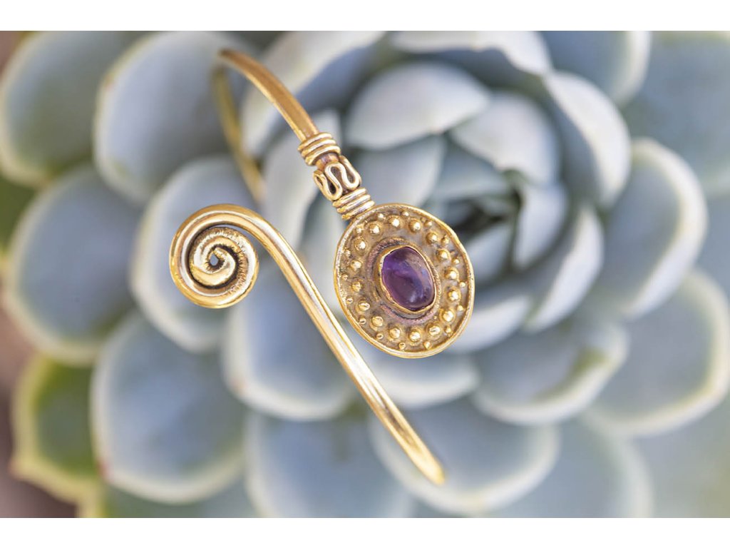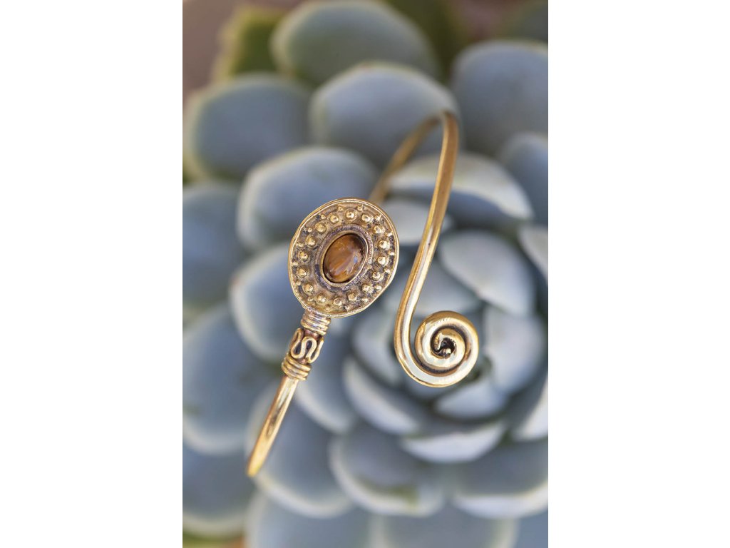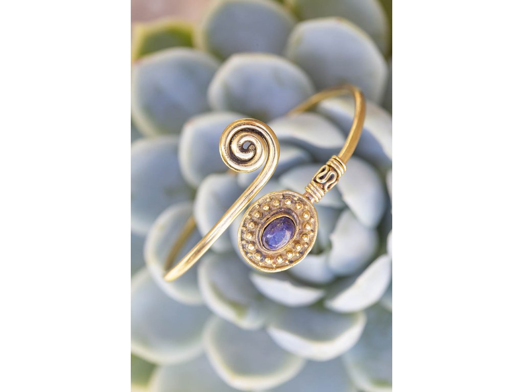 Náramek kámen a spirála Krásný mosazný náramek s drahokamem a spirálou. Na výběr je: Ametyst je kamenem čistoty ducha a meditace. Pomáhá nám v sobě objevovat sebeobětování, lásku, pokoru a nezištnost. Těmito vlastnostmi nám otevírá cestu do jiných dimenzí bytí. Je to kámen inspirace, směřuje naše myšlení k tvořivé práci a probouzí v nás intuici. Labradorit je vhodný pro bytost, která je připravená ukázat světu své skryté hlubiny. Vynáší na povrch to, co před světem ukrýváme a osvobozuje naši osobnost od starých vzorců a zábran. Odložením zábran se navrací do života spontánnost a radost. Je to také ochranný kámen šamanů a mágů, aby nesešli z cesty při propojování různých dimenzí a světů, přináší světlo, které rozjasňuje tuto cestu. Lapis lazuli je jedinečný drahokam, který pomáhá a podporuje svého nositele v mnoha ohledech. Navozuje vnitřní klid a mír, podporuje radost, odvahu, lásku, poctivost a kreativitu. Upevňuje mezilidské vztahy a zlepšuje komunikaci. Zvyšuje sebevědomí a podporuje osobní růst. Mírní strach, vztek a agresivitu. Má blahodárný vliv na paměť a úsudek. Dokáže odstraňovat stres a taky být velkým pomocníkem při detoxikaci organismu, například při dietě. Tygří oko je ochranný kámen, která se používá jako talisman před všemi formami nebezpečí. Propojuje sluneční a zemskou energii a tím pomáhá uzemnit lidi, kteří ztratili spojení s realitou a zároveň podporuje duchovní růst těch materialisticky zaměřených. Je to hřejivý kámen, podporuje to energie v těle a dodává sílu, přitahuje peníze a prosperitu. Pomáhá s odbouráním závislostí na druhých uznáním vlastní hodnoty. Mírní deprese.Buďte první, kdo napíše příspěvek k této položce.