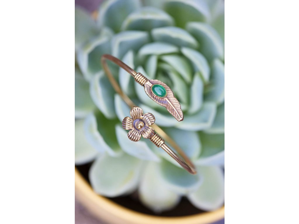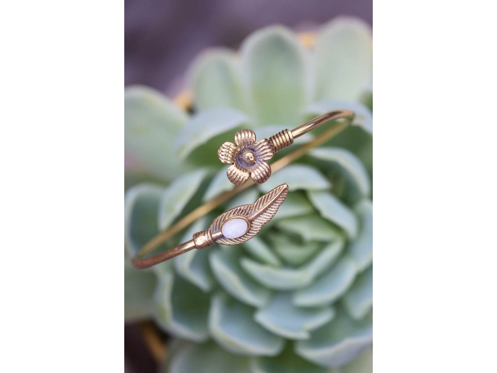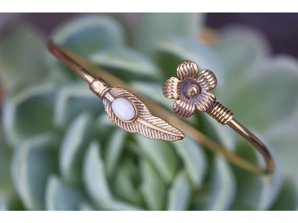 Náramek kytička a peříčko s drahokamem Jemný náramek kytička a peříčko s drahokamem. Obvod se dá upravit podle potřeby. Krásná ozdoba pro vaše ruce. Na výběr je bílý měsíční kámen, zelený onyx a fialový ametyst. Ametyst je kamenem čistoty ducha a meditace. Pomáhá nám v sobě objevovat sebeobětování, lásku, pokoru a nezištnost. Těmito vlastnostmi nám otevírá cestu do jiných dimenzí bytí. Je to kámen inspirace, směřuje naše myšlení k tvořivé práci a probouzí v nás intuici. Měsíční kámen je uchvacující drahokam, který má silné magické účinky. Ochraňuje citlivé povahy a napomáhá vyrovnaným šťastným vztahům. Je považován za drahokam štěstí. Působí pozitivně na intuici, tvořivost a podpoří Vás v nových začátcích. Šperk s měsíčním kamenem by neměl chybět ve šperkovnici žádné ženy. Více o měsíčním kameni se dočtete na našem blogu. Onyx je ochranný kámen, který odráží negativitu vědomě namířenou proti vám. Chrání život, dodává sílu, pomáhá v těžkých obdobích, při mimořádném fyzickém a citovém vypětí. Zaměřuje energii jedním směrem, přináší ráznost a vytrvalost, dovoluje svému nositeli stát se pánem svého osudu. Poskytuje poučení z minulosti, zvyšuje sebedůvěru a sebekontrolu, léčí stará traumata ovlivňující současný život a snižuje strach a obavy. Udržuje v těle rovnováhu energií jin a jang. Další náramky v naší nabídce.Buďte první, kdo napíše příspěvek k této položce.