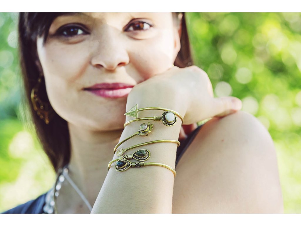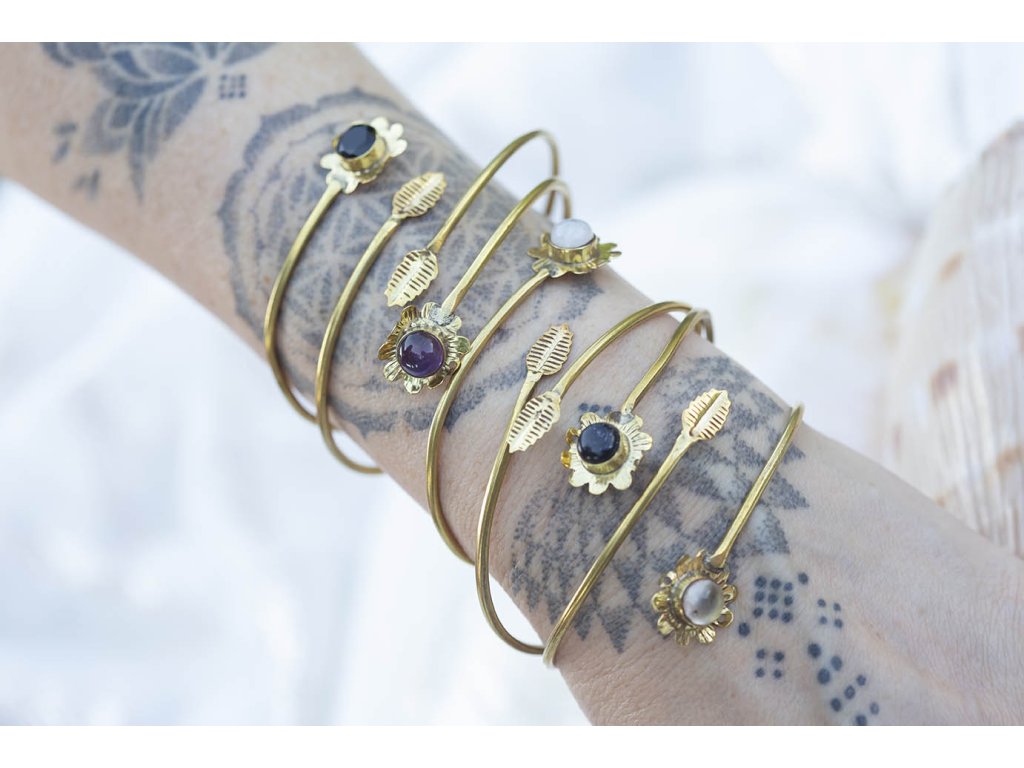 Náramek kytička s drahokamem a pírko Mosazný náramek kytička s drahokamem a pírko. Na výběr je: Ametyst je kamenem čistoty ducha a meditace. Pomáhá nám v sobě objevovat sebeobětování, lásku, pokoru a nezištnost. Těmito vlastnostmi nám otevírá cestu do jiných dimenzí bytí. Je to kámen inspirace, směřuje naše myšlení k tvořivé práci a probouzí v nás intuici. Syntetický aventurin - noční obloha s hvězdami. Měsíční kámen je uchvacující drahokam, který má silné magické účinky. Ochraňuje citlivé povahy a napomáhá vyrovnaným šťastným vztahům. Je považován za drahokam štěstí. Působí pozitivně na intuici, tvořivost a podpoří Vás v nových začátcích. Šperk s měsíčním kamenem by neměl chybět ve šperkovnici žádné ženy. Více o měsíčním kameni se dočtete na našem blogu. Onyx je ochranný kámen, který odráží negativitu vědomě namířenou proti vám. Chrání život, dodává sílu, pomáhá v těžkých obdobích, při mimořádném fyzickém a citovém vypětí. Zaměřuje energii jedním směrem, přináší ráznost a vytrvalost, dovoluje svému nositeli stát se pánem svého osudu. Poskytuje poučení z minulosti, zvyšuje sebedůvěru a sebekontrolu, léčí stará traumata ovlivňující současný život a snižuje strach a obavy. Udržuje v těle rovnováhu energií jin a jang. Růženín je kámen lásky. Pomáhá projevovat city, dodává lásku a krásu, podporuje něžnost, mírnost, přátelskost a nesobeckost. Podněcuje citlivost a vnímavost vůči ostatním i sobě samému, podporuje fantazii, inspiraci a tvořivost a trpělivost. Dává sílu k odpuštění, učí sebeúctě a sebelásce.Buďte první, kdo napíše příspěvek k této položce.
