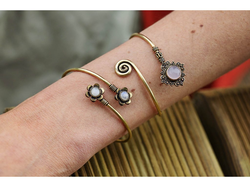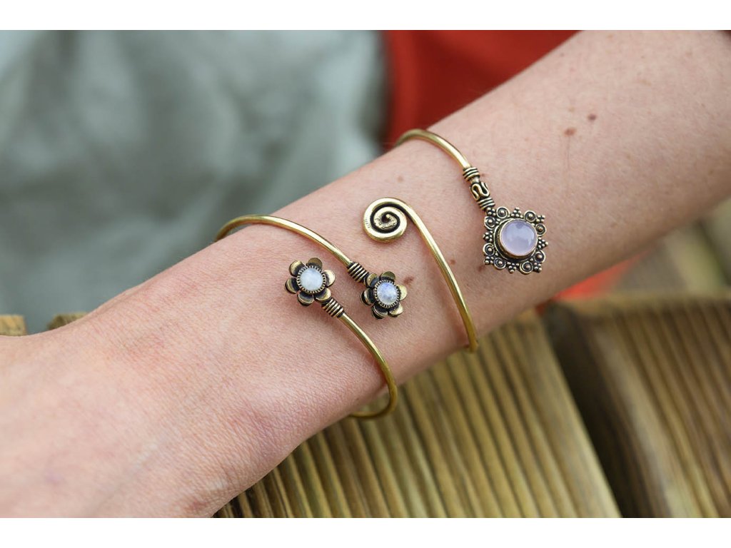 Náramek kytičky s drahokamy Jemný mosazný náramek se dvěma kameny zasazenými do kytičky. Tygří oko je ochranný kámen, která se používá jako talisman před všemi formami nebezpečí. Propojuje sluneční a zemskou energii a tím pomáhá uzemnit lidi, kteří ztratili spojení s realitou a zároveň podporuje duchovní růst těch materialisticky zaměřených. Je to hřejivý kámen, podporuje to energie v těle a dodává sílu, přitahuje peníze a prosperitu. Pomáhá s odbouráním závislostí na druhých uznáním vlastní hodnoty. Mírní deprese.Buďte první, kdo napíše příspěvek k této položce.