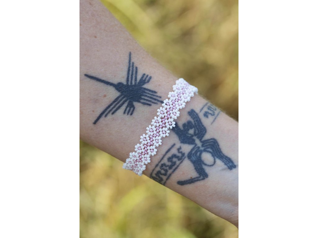 Náramek Luční kvítí Náramek s drobných korálků co připomíná luční kvítí, krásný šperk s pohádkovou energií, co tě osvěží a podtrhne přirozenou jemnost zevnějšku. Vytvořila ho paní Helenka a Markét o tom napsala krátký příběh: "Helenka je mámina kámoška a stejně jako ona je nesmírně šikovná na ruční práce. Umí zasadit a sklidit řepu i brambory a vedle toho tvoří z jabloneckých korálků rozličné šperky navlíkané na vlasec do krásných tvarů. Na Jamaru vám exkluzivně nabízíme zlomek z Heleniny tvorby, protože milujeme tu krásu a je nám ctí ji podpořit." Délka náramku 18,5 cmDoplňkové parametry
