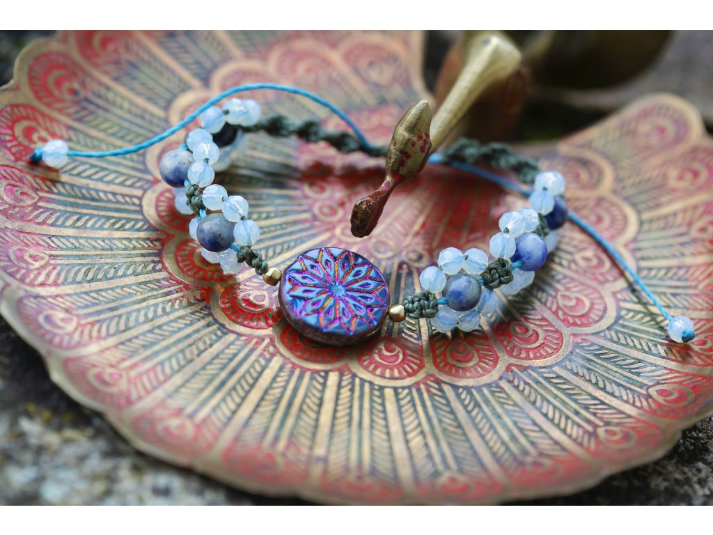 Náramek Mandala Hledáte jedinečný a smysluplný doplněk, který podtrhne vaši individualitu a zároveň vám přinese klid a sílu? Pak vás zaručeně okouzlí náš náramek Mandala . Nechte se uchvátit: Ručně vyrobený macramé: Náramek je s láskou a péčí vyroben technikou macramé. Skleněná mandala od českých sklářů: Jemná a detailní mandala od českých mistrů sklářství dodá náramku punc elegance a jedinečnosti. Fasetované opality: Třpytivé opality symbolizují štěstí, naději a vnitřní sílu. Sodalit: Modrý sodalit uklidňuje mysl, podporuje intuici a otevírá cestu k duchovnímu poznání. Tento macramé náramek je: Ručně vyrobený s láskou v České republice Dodávaný v dárkové krabičce Velikost nastavitelná pomocí macramé zámečku Perfektní dárek pro sebe i pro milovanou osobu Symbol elegance, síly a harmonie Účinky minerálů: Opalit: Symbolizuje štěstí, naději a vnitřní sílu. Podporuje kreativitu a optimismus. Sodalit: Uklidňuje mysl, podporuje intuici a otevírá cestu k duchovnímu poznání. Pomáhá při rozhodování a řešení problémů. Objednejte si náramek Mandala a dodejte svému outfitu jedinečný a smysluplný nádech! Tip: Náramek skvěle doplní jak ležérní, tak i elegantní oblečení. Proč si vybrat macramé náramek z naší kolekce? Podporujete ruční výrobu a lokální řemeslo v České republice. Každý náramek je originální a jedinečný. Nosíte šperk s hlubším významem a energií minerálů. Kupujete si dárek s láskou a péčí od českých sklářů a designérů. Dopřejte si sílu a krásu s macramé náramkem MandalaDoplňkové parametry
