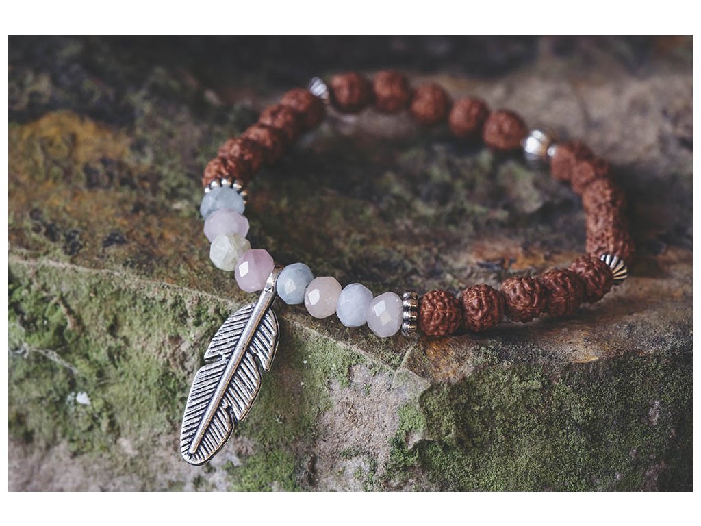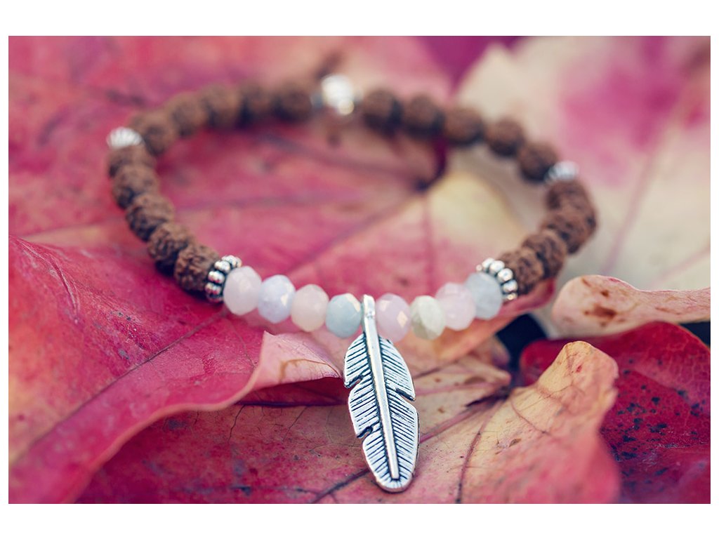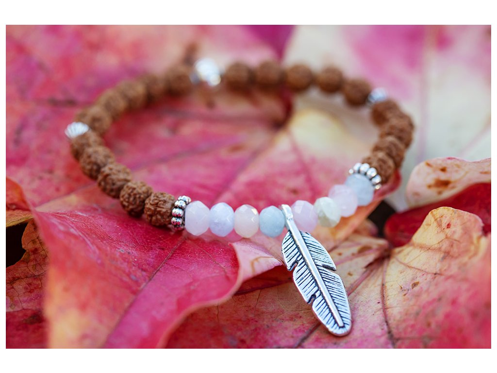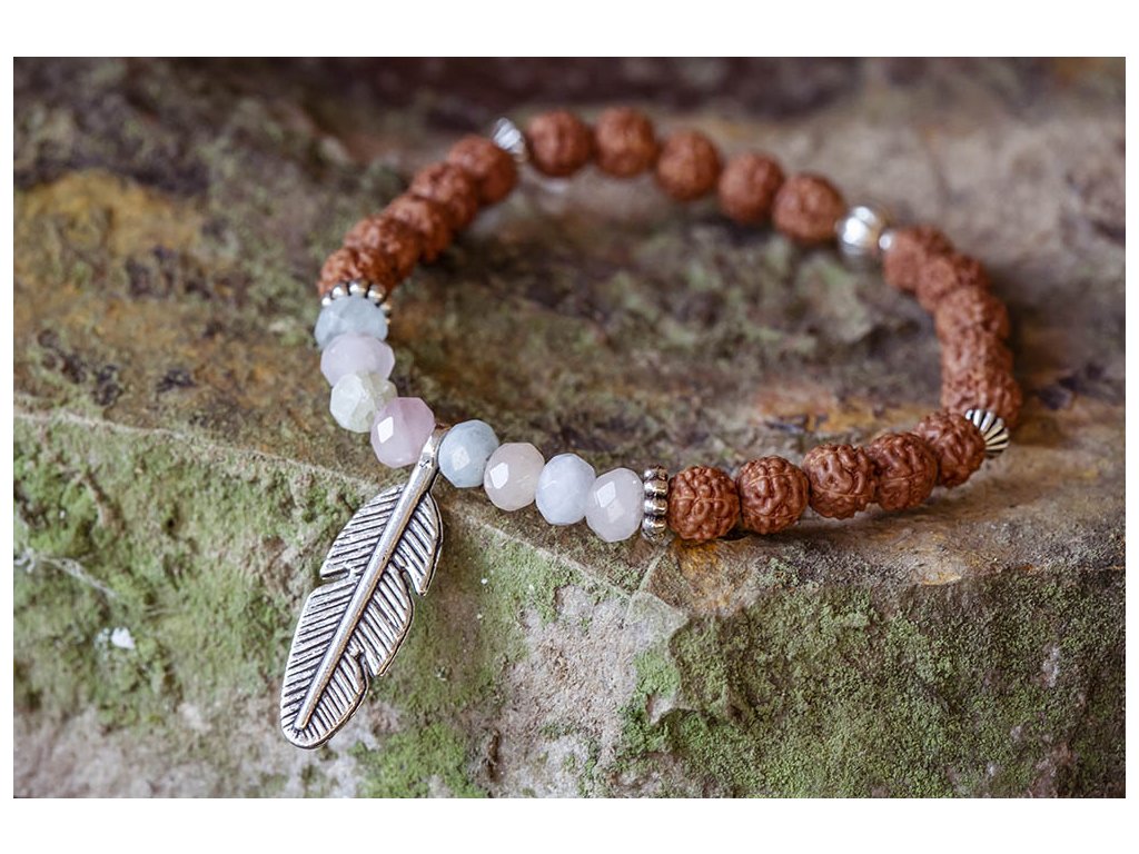Náramek morganit rudraksha a peříčko Náramek sestává z fasetovaného morganitu, přívěsku peříčka a rudrakshy navlečených na pružném vlasci. Morganit uklidňuje, posiluje radost a vnitřní sílu. Je kamenem lásky a soucitu. Zvyšuje sebedůvěru a stabilizuje emoce, zahání stres. Mírní vztek a zlost. Zlepšuje komunikaci a vyjadřování. Podporuje náš potenciál. Posiluje moudrost, otevřenost a sympatie. Pomáhá překonávat rozchody a komplikované vztahy. Podporuje boj proti lenivosti. Obvod náramku: M (16,5-18,5 cm) L (19-21 cm)Buďte první, kdo napíše příspěvek k této položce.