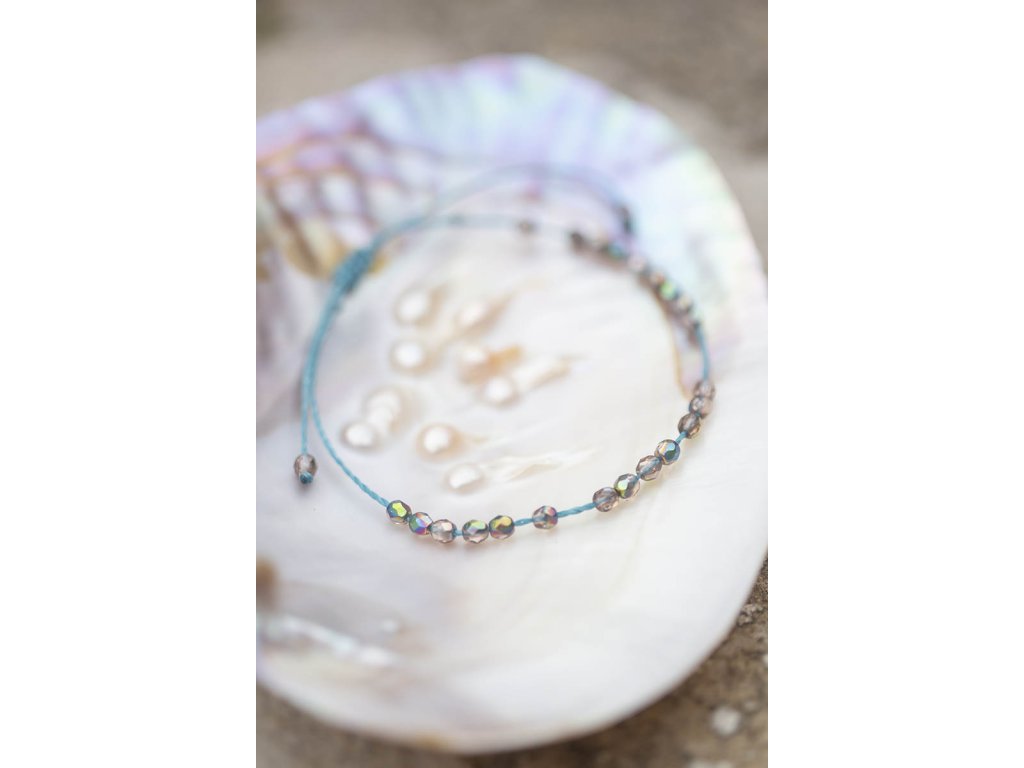 Náramek na nohu Ohnivé korálky Náramek na nohu s fasetovanými ohnivými korálky s holografickým třpytem od českých sklářů na brazilské macramé šňůrce petrolejově modré barvy...doufáme, že tenhle boží náramek na nohu vás zaujme i potěší. Délka nastavitelná pomocí macramé zámečku.Doplňkové parametry