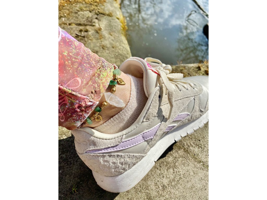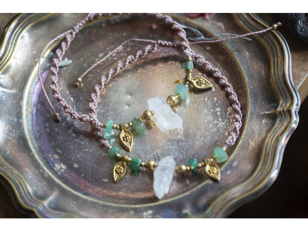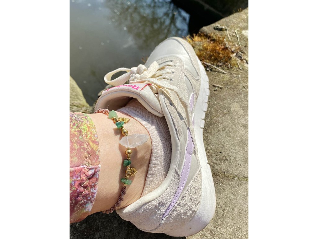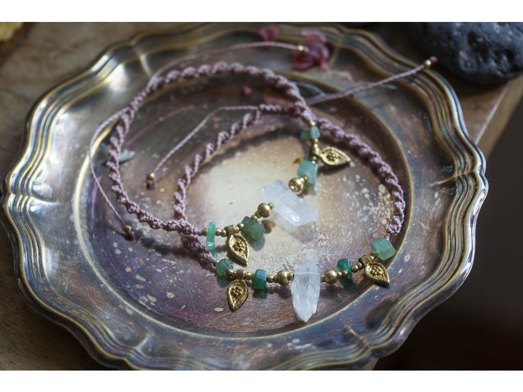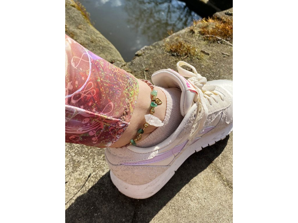 Náramek na nohu s křišťálem a jadeitem Něco originálního na léto? Náramek na nohu s křišťálem a jadeitem, s mosaznými komponenty a starorůžovou macramé dvoušroubovicí DNA. Vlastnosti drahokamů vás podpoří a ještě navíc získáte osobní šperk, který si okamžitě zamilujete. Jadeit je ochranný kámen, jenž vnáší do života harmonii. Je symbolem klidu a míru. Přitahuje štěstí, přátelství a peníze. Chrání nás před neštěstím a nehodami. Uklidňuje mysli a pozvedá moudrost ducha. Je skvělý při obchodních jednáních. Podporuje kouzlo osobnosti, empatii, neúnavnost a usnadňuje mezilidskou komunikaci. Stimuluje k práci, podporuje realizaci nápadů, sebevědomí, sebejistotu, sebedůvěru a samostatnost. Na cestách chrání před nebezpečím a nemocemi. Prodlužuje život. Křišťál je jedinečný kámen, který uvádí energii svého nositele do harmonie, zesiluje jí a tím povzbuzuje psychiku, jasnozřivost a samostatnost a sebezdokonalení. Ochraňuje před zlými a negativními silami. Harmonizuje, čistí a chrání auru a tím zajišťuje klidný spánek. Je vhodný pro meditace a magické účely. Délka nastavitelná pomocí macramé zámečku.Doplňkové parametry