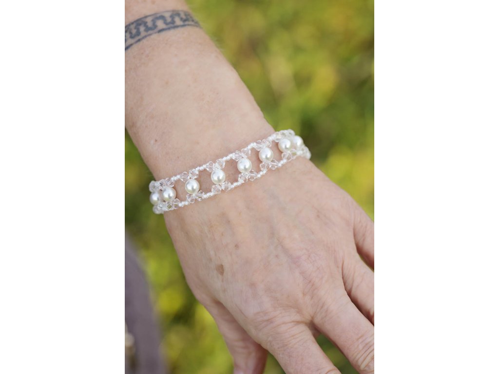 Náramek Perličky v ledu Velmi jemný náramek Perličky v ledu je novinkou v našem náramkovém světě. Je tvořen z bižuterních perel a skleněných jabloneckých korálků. Vytvořila ho paní Helenka a Markét o tom napsala krátký příběh: "Helenka je mámina kámoška a stejně jako ona je nesmírně šikovná na ruční práce. Umí zasadit a sklidit řepu i brambory a vedle toho tvoří z jabloneckých korálků rozličné šperky navlíkané na vlasec do krásných tvarů. Na Jamaru vám exkluzivně nabízíme zlomek z Heleniny tvorby, protože milujeme tu krásu a je nám ctí ji podpořit." Délka náramku 19,5 cmDoplňkové parametry