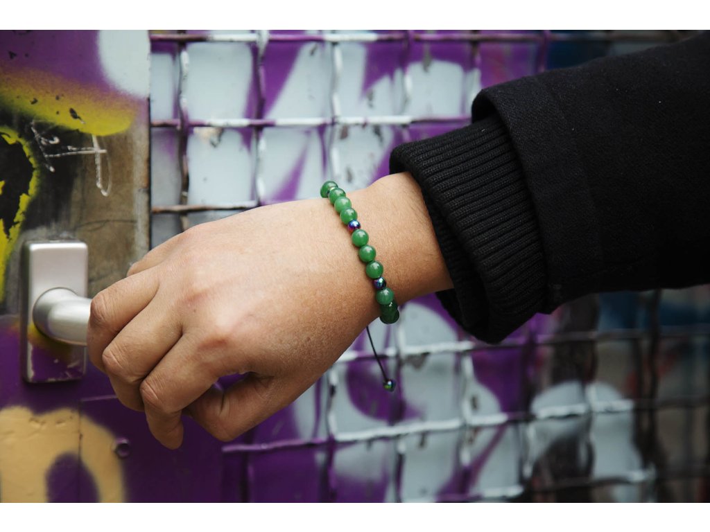 Náramek pro něj s jadeitem I muži, kteří většinou neprojevují nadšení ze šperků, budou nadšeni z tohoto náramku z jadeitu a pokoveného hematitu na černé macramé šňůrce. Neváhejte a kupte tento dárek pro něj. Máme jen pár kousků. Hematit je zvláště účinný při uzemnění a jako ochranný kámen. Uvádí do rovnováhy tělo, mysl i ducha. Nese v sobě silný element jang a zajišťuje rovnováhu meridiánů, čímž napravuje nevyváženost prvku jin. O hematitu se píše, že působí zvlášť blahodárně v situacích spojených s právem a zákony. Silně působí také v duševní rovině. Pomáhá plachým osobám zvyšovat sebevědomí a podporuje schopnost přežít. Dodává větší vůli k životu a rozvíjí spolehlivost. Zvyšuje rovněž důvěryhodnost. Tento kámen odstraňuje omezení, která si jeho majitel v minulosti sám stanovil, a napomáhá rozvoji osobnosti. Účinně asistuje při překonávání různých nutkání a návyků. Hematit obrací pozornost k nenaplněným touhám představujícím hnací motor lidského života. Jadeit je ochranný kámen, jenž vnáší do života harmonii. Je symbolem klidu a míru. Přitahuje štěstí, přátelství a peníze. Chrání nás před neštěstím a nehodami. Uklidňuje mysli a pozvedá moudrost ducha. Je skvělý při obchodních jednáních. Podporuje kouzlo osobnosti, empatii, neúnavnost a usnadňuje mezilidskou komunikaci. Stimuluje k práci, podporuje realizaci nápadů, sebevědomí, sebejistotu, sebedůvěru a samostatnost. Na cestách chrání před nebezpečím a nemocemi. Prodlužuje život. Velikost nastavitelná pomocí macramé zámečku. Další šperky vhodné i pro muže najdete zde.Doplňkové parametry