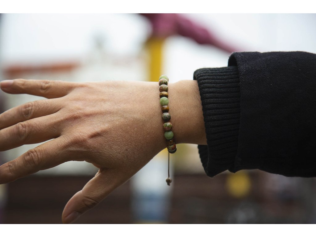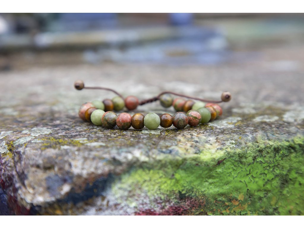 Náramek pro něj unakit a jadeit I muži, kteří většinou neprojevují nadšení ze šperků, budou nadšeni z tohoto náramku z unakitu, jadeitu a dřevěných korálků na hnědé macramé šňůrce. Neváhejte a kupte tento dárek pro něj. Máme jen pár kousků. Jadeit je ochranný kámen, jenž vnáší do života harmonii. Je symbolem klidu a míru. Přitahuje štěstí, přátelství a peníze. Chrání nás před neštěstím a nehodami. Uklidňuje mysli a pozvedá moudrost ducha. Je skvělý při obchodních jednáních. Podporuje kouzlo osobnosti, empatii, neúnavnost a usnadňuje mezilidskou komunikaci. Stimuluje k práci, podporuje realizaci nápadů, sebevědomí, sebejistotu, sebedůvěru a samostatnost. Na cestách chrání před nebezpečím a nemocemi. Prodlužuje život. Velikost nastavitelná pomocí macramé zámečku. Další šperky vhodné i pro muže najdete zde.Doplňkové parametry