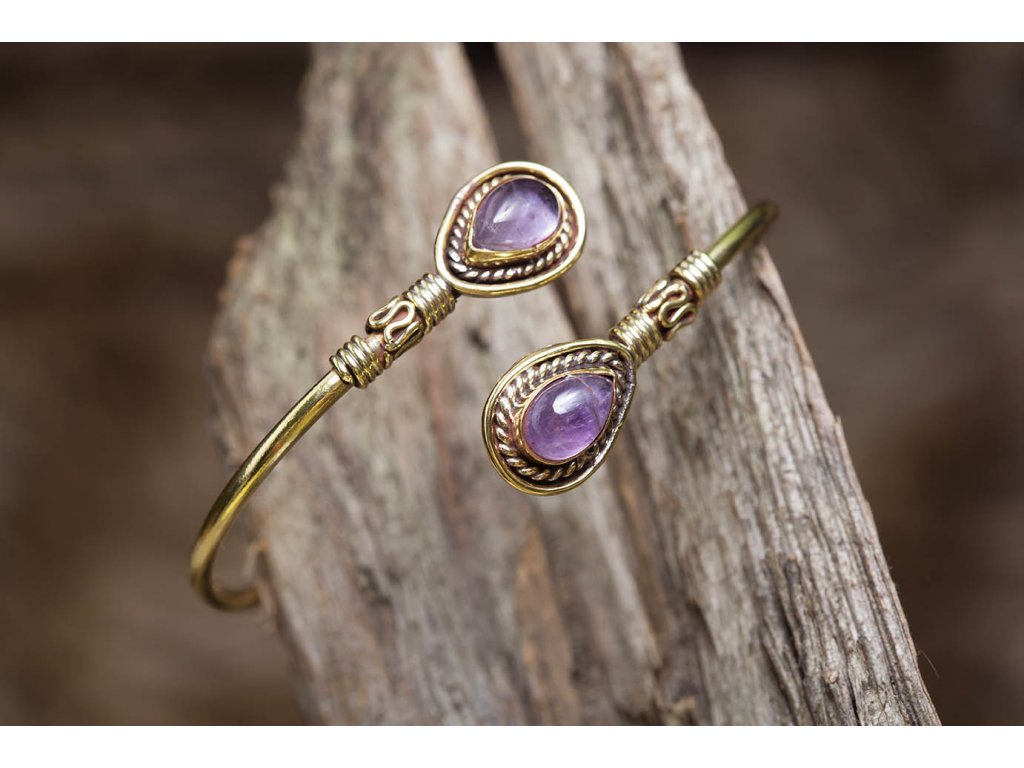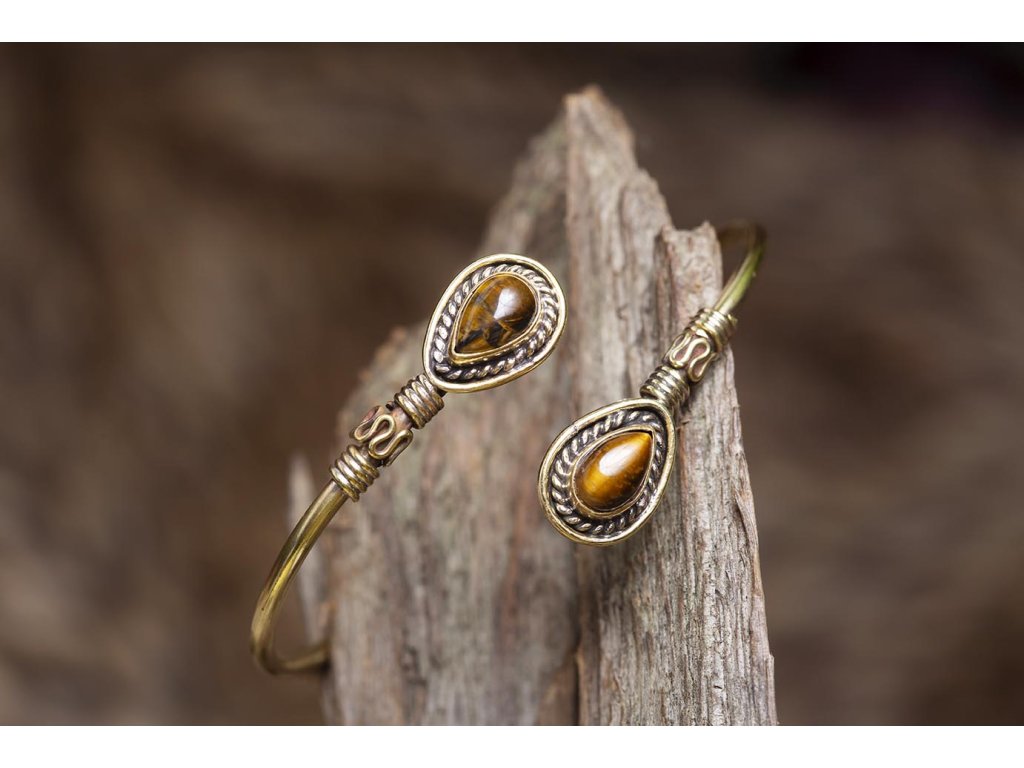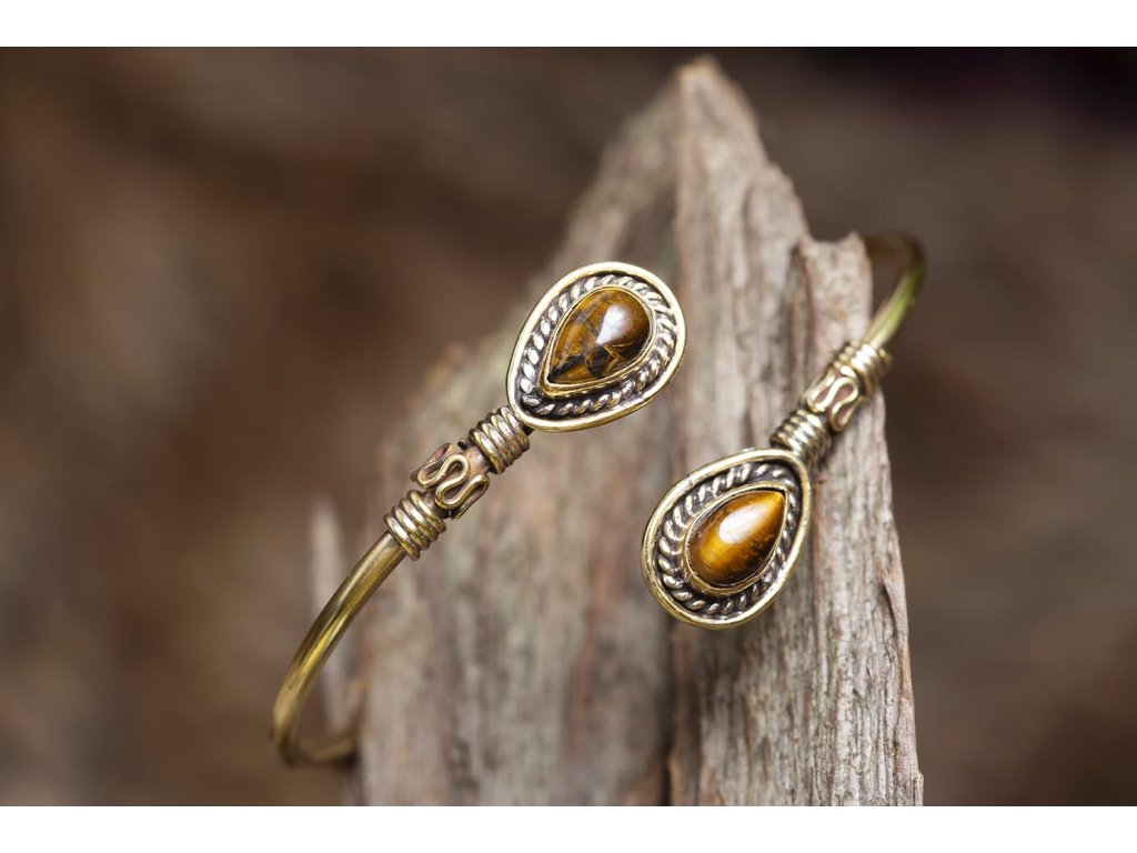 Náramek s drahokamy Překrásný mosazný náramek se dvěma drahokamy. Na výběr je fialový ametyst, tmavočervený granát, modrý lapis lazuli a hnědé tygří oko. Ametyst je kamenem čistoty ducha a meditace. Pomáhá nám v sobě objevovat sebeobětování, lásku, pokoru a nezištnost. Těmito vlastnostmi nám otevírá cestu do jiných dimenzí bytí. Je to kámen inspirace, směřuje naše myšlení k tvořivé práci a probouzí v nás intuici. Granát dodává životní energii, podněcuje k činnosti i sexuální aktivitě, podporuje nadšení, vytrvalost, představivost, vůli a sebedůvěru, zmírňuje deprese. Napomáhá k regeneraci organismu a buněk, podporuje tvorbu červených krvinek. Povzbuzuje vitalitu, reguluje krevní tlak a oběh, posiluje srdce, zastavuje krvácení. Upravuje příčiny hormonálních a sexuálních poruch, působí jako sexuální stimulant a pomáhá léčit impotenci způsobenou psychickými problémy. Více o granátu se dočtete na našem blogu. Lapis lazuli je jedinečný drahokam, který pomáhá a podporuje svého nositele v mnoha ohledech. Navozuje vnitřní klid a mír, podporuje radost, odvahu, lásku, poctivost a kreativitu. Upevňuje mezilidské vztahy a zlepšuje komunikaci. Zvyšuje sebevědomí a podporuje osobní růst. Mírní strach, vztek a agresivitu. Má blahodárný vliv na paměť a úsudek. Dokáže odstraňovat stres a taky být velkým pomocníkem při detoxikaci organismu, například při dietě. Tygří oko je ochranný kámen, která se používá jako talisman před všemi formami nebezpečí. Propojuje sluneční a zemskou energii a tím pomáhá uzemnit lidi, kteří ztratili spojení s realitou a zároveň podporuje duchovní růst těch materialisticky zaměřených. Je to hřejivý kámen, podporuje to energie v těle a dodává sílu, přitahuje peníze a prosperitu. Pomáhá s odbouráním závislostí na druhých uznáním vlastní hodnoty. Mírní deprese.Buďte první, kdo napíše příspěvek k této položce.