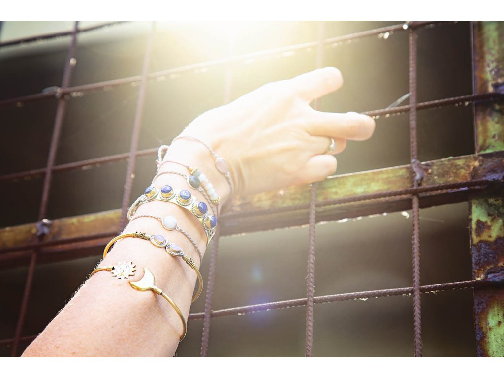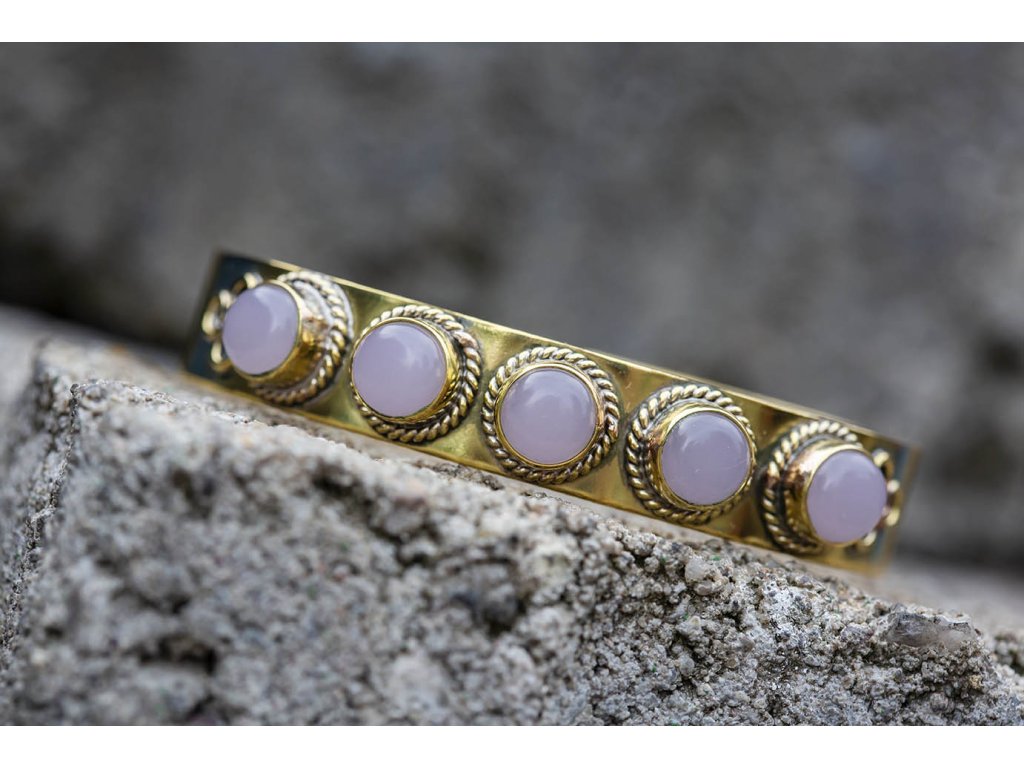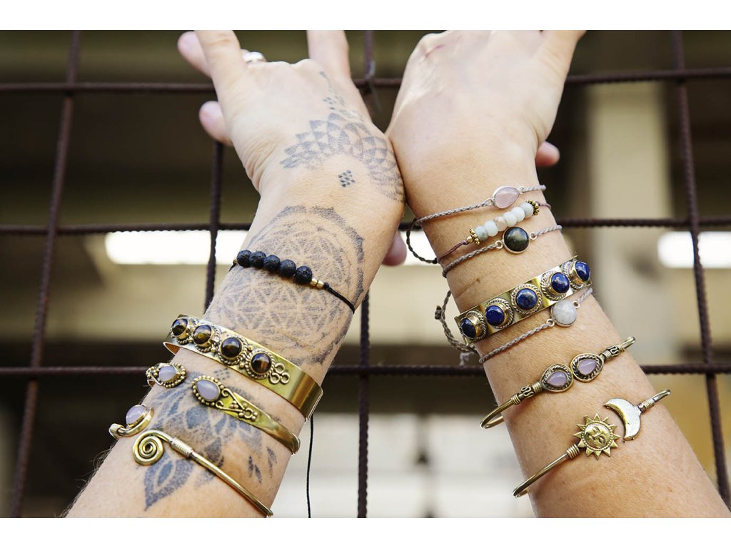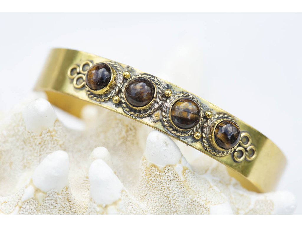 Náramek s drahokamy Masivní mosazný náramek s pěti drahokamy. Tygří oko je ochranný kámen, která se používá jako talisman před všemi formami nebezpečí. Propojuje sluneční a zemskou energii a tím pomáhá uzemnit lidi, kteří ztratili spojení s realitou a zároveň podporuje duchovní růst těch materialisticky zaměřených. Je to hřejivý kámen, podporuje to energie v těle a dodává sílu, přitahuje peníze a prosperitu. Pomáhá s odbouráním závislostí na druhých uznáním vlastní hodnoty. Mírní deprese.Buďte první, kdo napíše příspěvek k této položce.