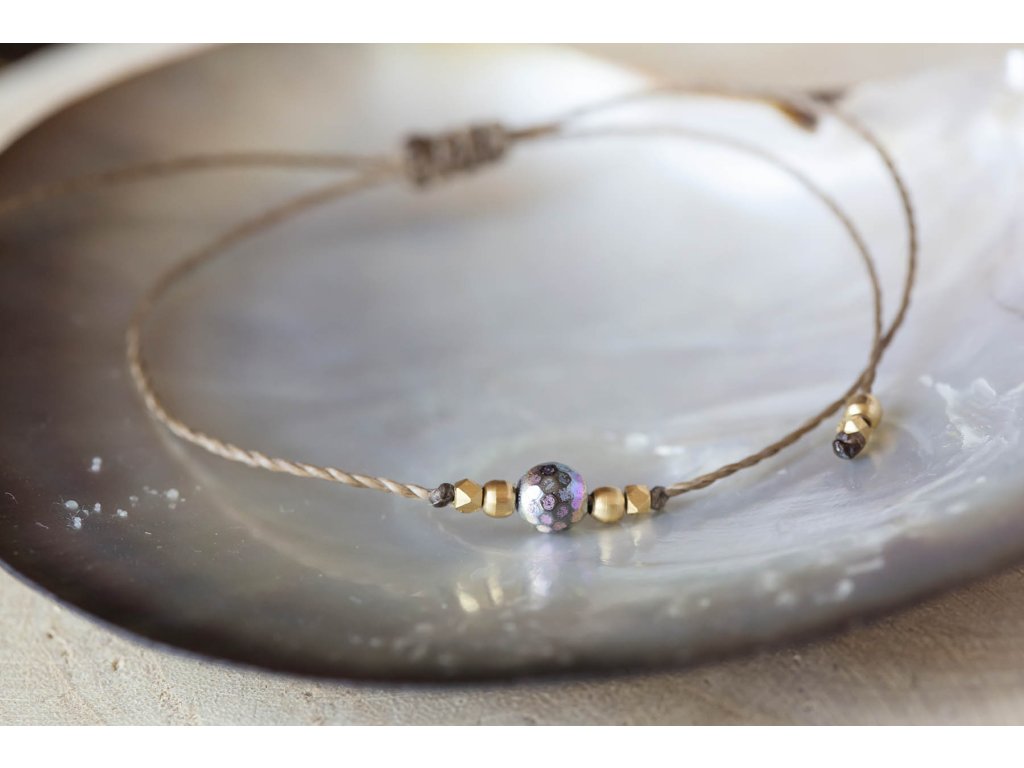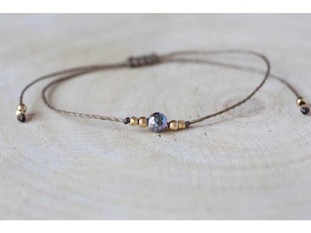 Náramek s hematitem Jemný náramek pokovený fasetovaný hematit na macramé šňůrce. Hematit je zvláště účinný při uzemnění a jako ochranný kámen. Uvádí do rovnováhy tělo, mysl i ducha. Nese v sobě silný element jang a zajišťuje rovnováhu meridiánů, čímž napravuje nevyváženost prvku jin. O hematitu se píše, že působí zvlášť blahodárně v situacích spojených s právem a zákony. Silně působí také v duševní rovině. Pomáhá plachým osobám zvyšovat sebevědomí a podporuje schopnost přežít. Dodává větší vůli k životu a rozvíjí spolehlivost. Zvyšuje rovněž důvěryhodnost. Tento kámen odstraňuje omezení, která si jeho majitel v minulosti sám stanovil, a napomáhá rozvoji osobnosti. Účinně asistuje při překonávání různých nutkání a návyků. Hematit obrací pozornost k nenaplněným touhám představujícím hnací motor lidského života. Velikost je nastavitelná pomocí macramé zámečku.Doplňkové parametry