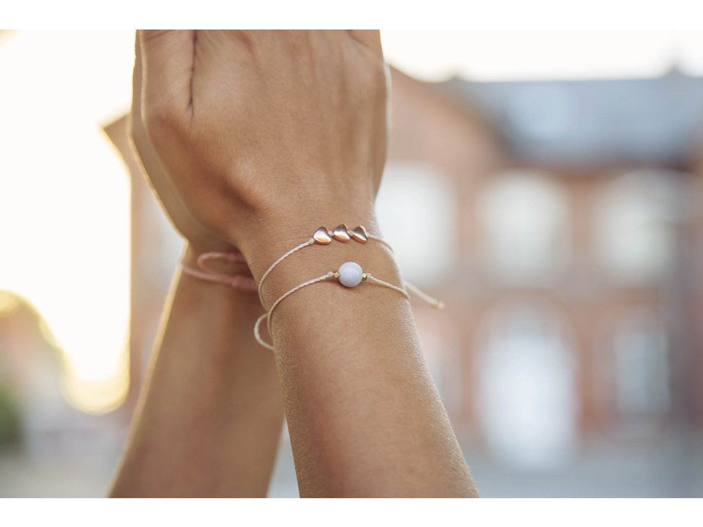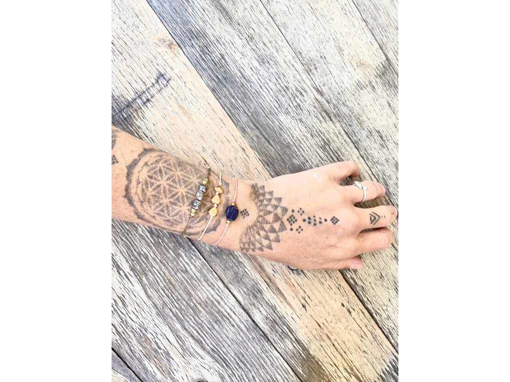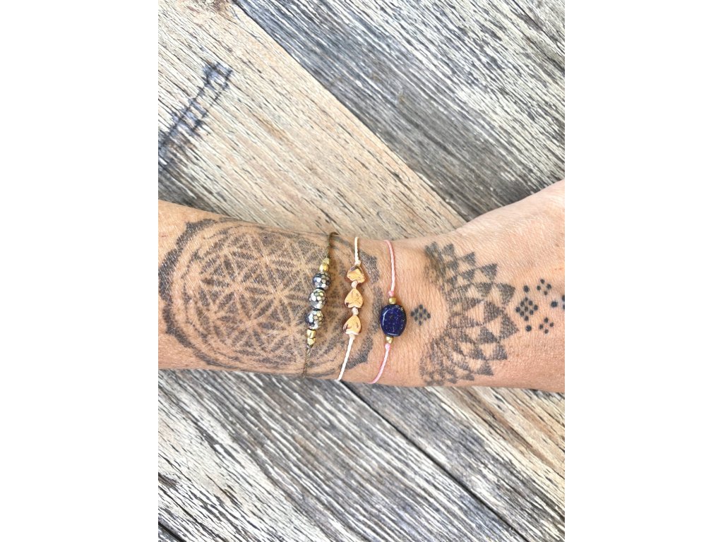 Náramek s hematitovými srdíčky Hematitová srdíčka na macramé šňůrce tvoří tento jemný náramek. Jemný nevšední náramek na každou ručku. Srdíčka jsou z pokoveného hematitu. Hematit je zvláště účinný při uzemnění a jako ochranný kámen. Uvádí do rovnováhy tělo, mysl i ducha. Nese v sobě silný element jang a zajišťuje rovnováhu meridiánů, čímž napravuje nevyváženost prvku jin. O hematitu se píše, že působí zvlášť blahodárně v situacích spojených s právem a zákony. Silně působí také v duševní rovině. Pomáhá plachým osobám zvyšovat sebevědomí a podporuje schopnost přežít. Dodává větší vůli k životu a rozvíjí spolehlivost. Zvyšuje rovněž důvěryhodnost. Tento kámen odstraňuje omezení, která si jeho majitel v minulosti sám stanovil, a napomáhá rozvoji osobnosti. Účinně asistuje při překonávání různých nutkání a návyků. Hematit obrací pozornost k nenaplněným touhám představujícím hnací motor lidského života. Velikost nastavitelné pomocí macramé zámečku.Doplňkové parametry