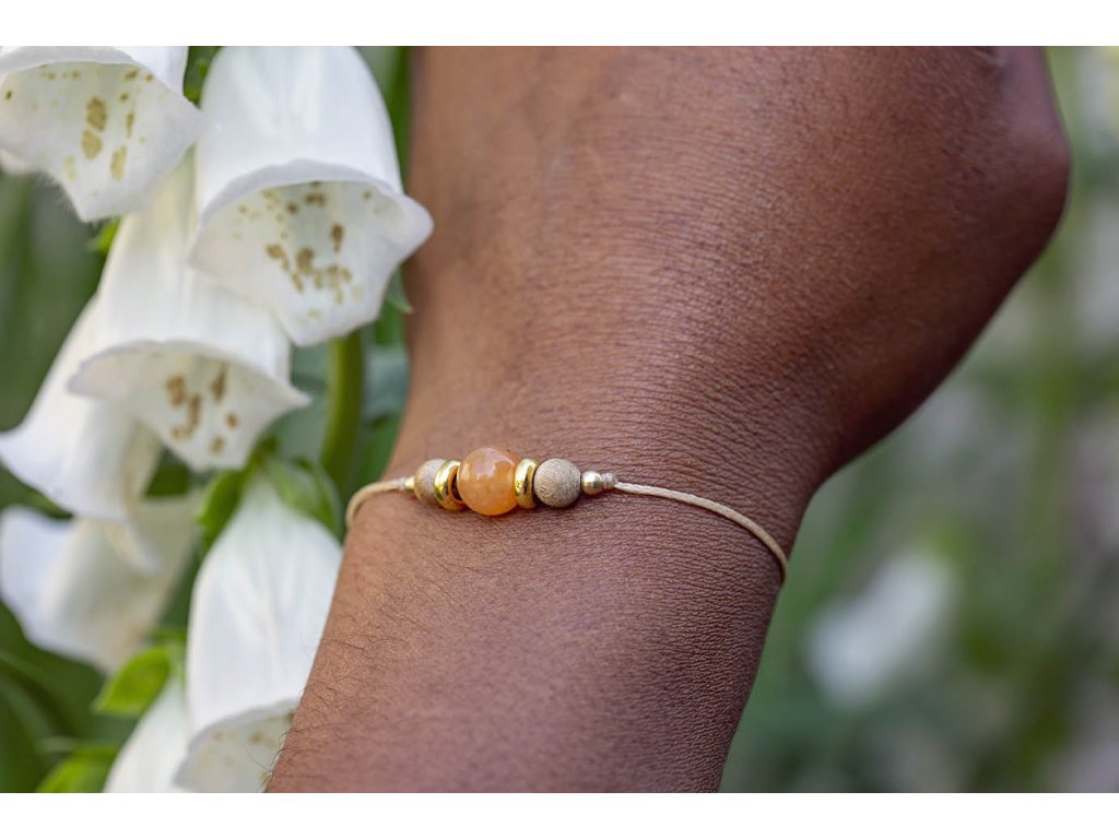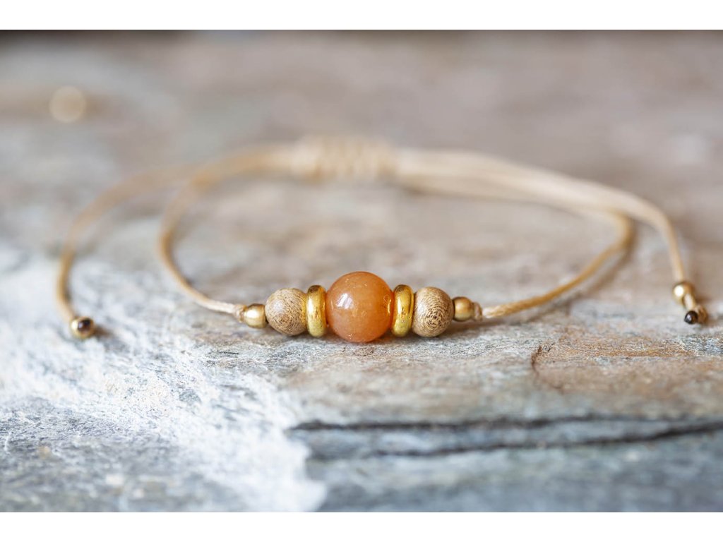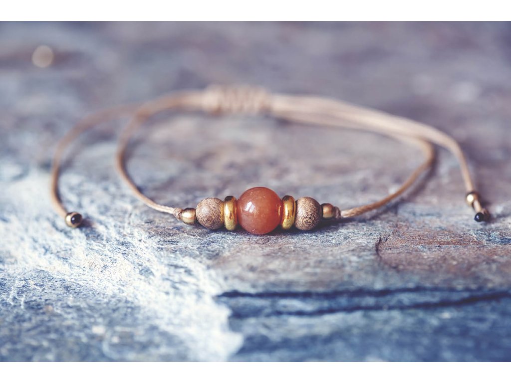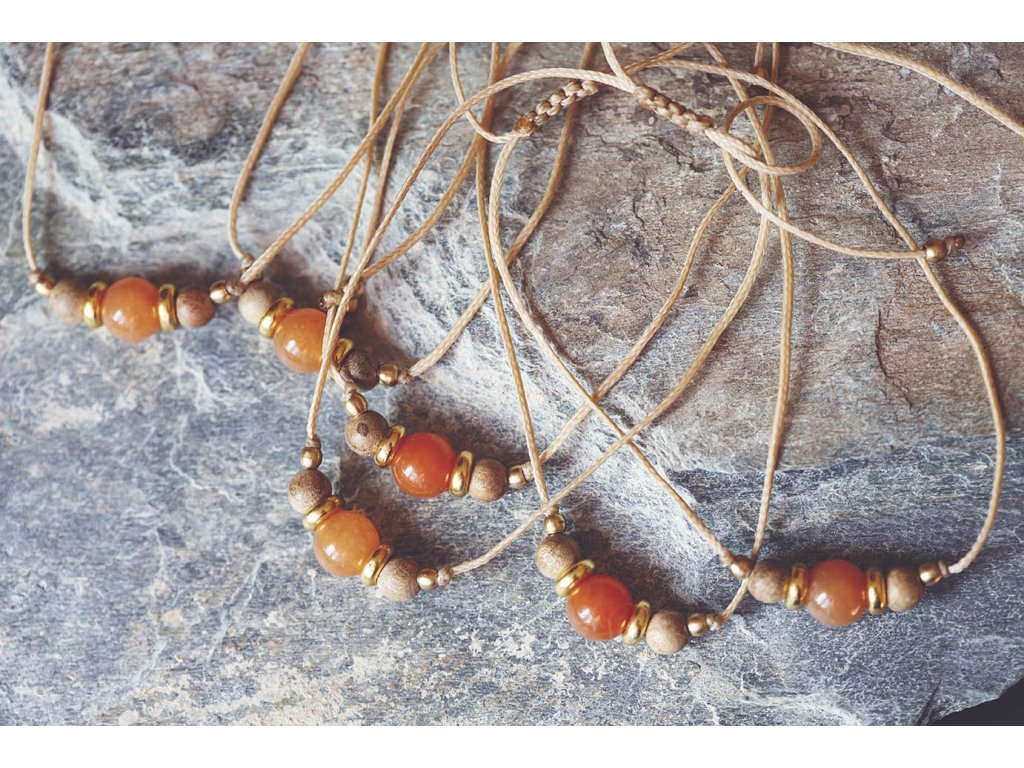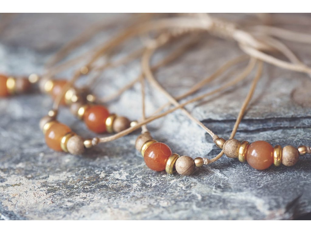 Náramek s karneolem Jemný náramek s karneolem a dřevěnými korálky. Karneol je plný životní síly a jeho energetická hodnota podněcuje tvořivost a sebedůvěru. Podporuje obnovení vitality, motivace a koncentrace, Povzbuzuje sexualitu. Chrání před závistí a záští. Zmírňuje žárlivost a dodává odvahu v těžkých životních volbách a situacích. Podněcuje k pozitivnímu pohledu na svět. Je skvělý na pracoviště. Přináší štěstí, prosperitu, podporuje analytické myšlení a zmírňuje tlak, který na vás vytváří kolegové či šéf. Je talismanem pro úspěch. Pomáhá odstranit strach ze smrti. Velikost nastavitelná pomocí macramé zámečku.Doplňkové parametry