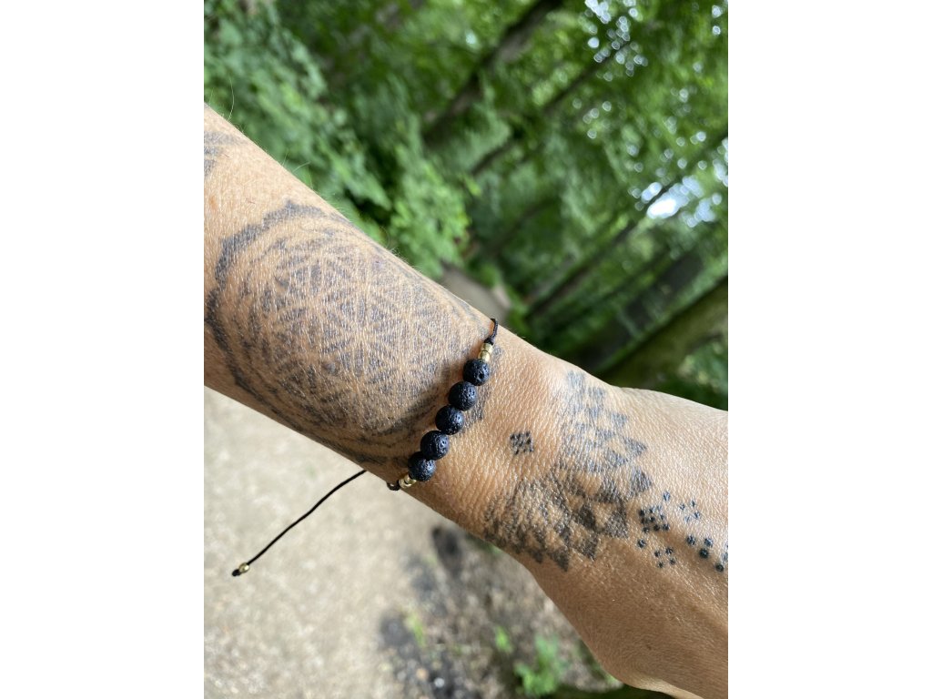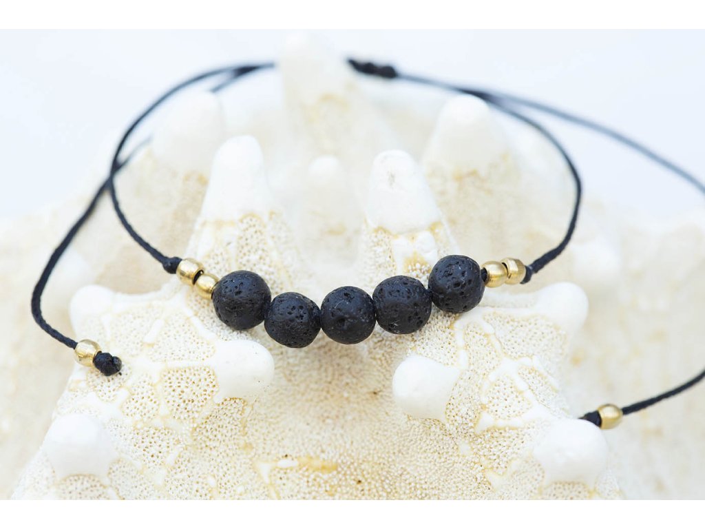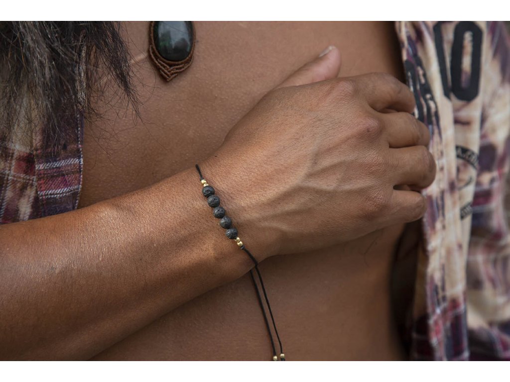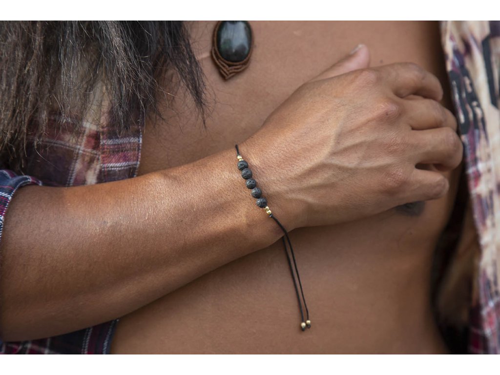 Náramek s lávou Jemný náramek lávové kameny na šňůrce s macramé zámečkem na nastavení velikosti.