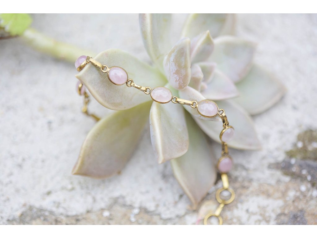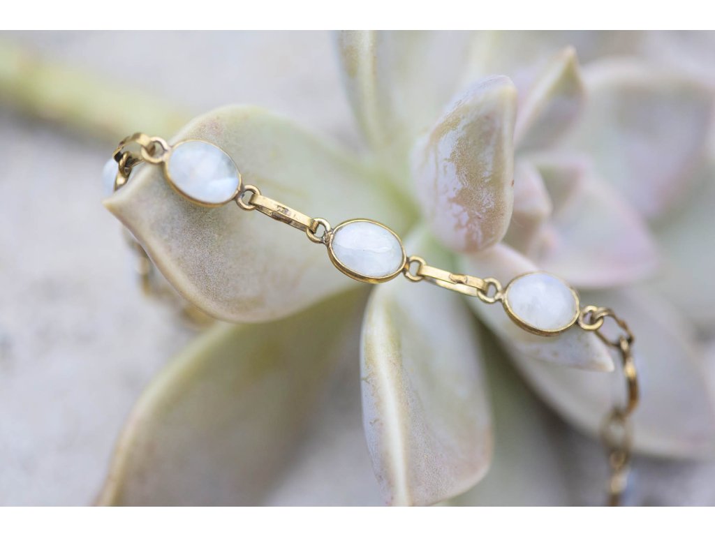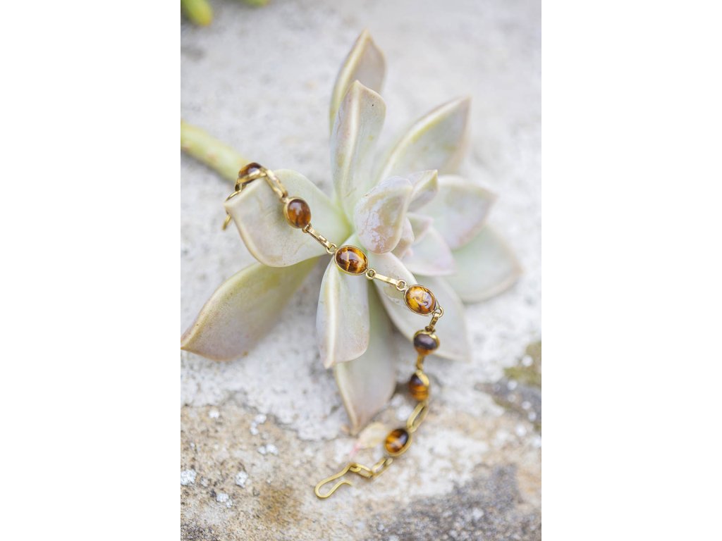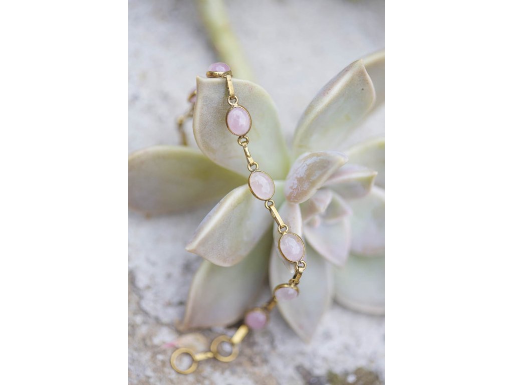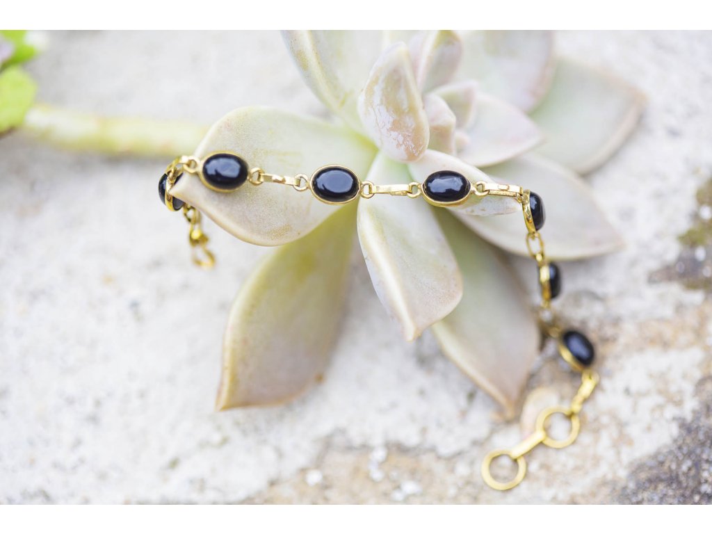 Náramek s oválnými drahokamy Jemný elegantní náramek z mosazi se sedmi oválnými drahokamy je přesně tou krásnou ozdobou, která chybí vašemu zápěstí. Na výběr máme zelenošedý labradorit, bílý měsíční kámen, světle růžový průsvitný růženín, zelený tyrkys, zelený onyx, černý onyx a hnědožluté tygří oko. Labradorit je vhodný pro bytost, která je připravená ukázat světu své skryté hlubiny. Vynáší na povrch to, co před světem ukrýváme a osvobozuje naši osobnost od starých vzorců a zábran. Odložením zábran se navrací do života spontánnost a radost. Je to také ochranný kámen šamanů a mágů, aby nesešli z cesty při propojování různých dimenzí a světů, přináší světlo, které rozjasňuje tuto cestu. Měsíční kámen je uchvacující drahokam, který má silné magické účinky. Ochraňuje citlivé povahy a napomáhá vyrovnaným šťastným vztahům. Je považován za drahokam štěstí. Působí pozitivně na intuici, tvořivost a podpoří Vás v nových začátcích. Šperk s měsíčním kamenem by neměl chybět ve šperkovnici žádné ženy. Více o měsíčním kameni se dočtete na našem blogu. Onyx je ochranný kámen, který odráží negativitu vědomě namířenou proti vám. Chrání život, dodává sílu, pomáhá v těžkých obdobích, při mimořádném fyzickém a citovém vypětí. Zaměřuje energii jedním směrem, přináší ráznost a vytrvalost, dovoluje svému nositeli stát se pánem svého osudu. Poskytuje poučení z minulosti, zvyšuje sebedůvěru a sebekontrolu, léčí stará traumata ovlivňující současný život a snižuje strach a obavy. Udržuje v těle rovnováhu energií jin a jang. Růženín je kámen lásky. Pomáhá projevovat city, dodává lásku a krásu, podporuje něžnost, mírnost, přátelskost a nesobeckost. Podněcuje citlivost a vnímavost vůči ostatním i sobě samému, podporuje fantazii, inspiraci a tvořivost a trpělivost. Dává sílu k odpuštění, učí sebeúctě a sebelásce. Tygří oko je ochranný kámen, která se používá jako talisman před všemi formami nebezpečí. Propojuje sluneční a zemskou energii a tím pomáhá uzemnit lidi, kteří ztratili spojení s realitou a zároveň podporuje duchovní růst těch materialisticky zaměřených. Je to hřejivý kámen, podporuje to energie v těle a dodává sílu, přitahuje peníze a prosperitu. Pomáhá s odbouráním závislostí na druhých uznáním vlastní hodnoty. Mírní deprese. Tyrkys slouží jeho nositeli k tříbení a vyjadřování vlastních myšlenek, zesiluje intuici, vyrovnanost, podporuje úspěch. Také chrání auru a pohlcuje škodlivé vlivy a zahání zlé sny. Posiluje pozitivní energii. Ve vztahové rovině přináší štěstí a klid. Maximální délka cca 20 cm. Náramek lze mírně zkrátit.Buďte první, kdo napíše příspěvek k této položce.