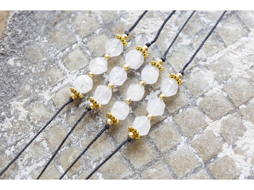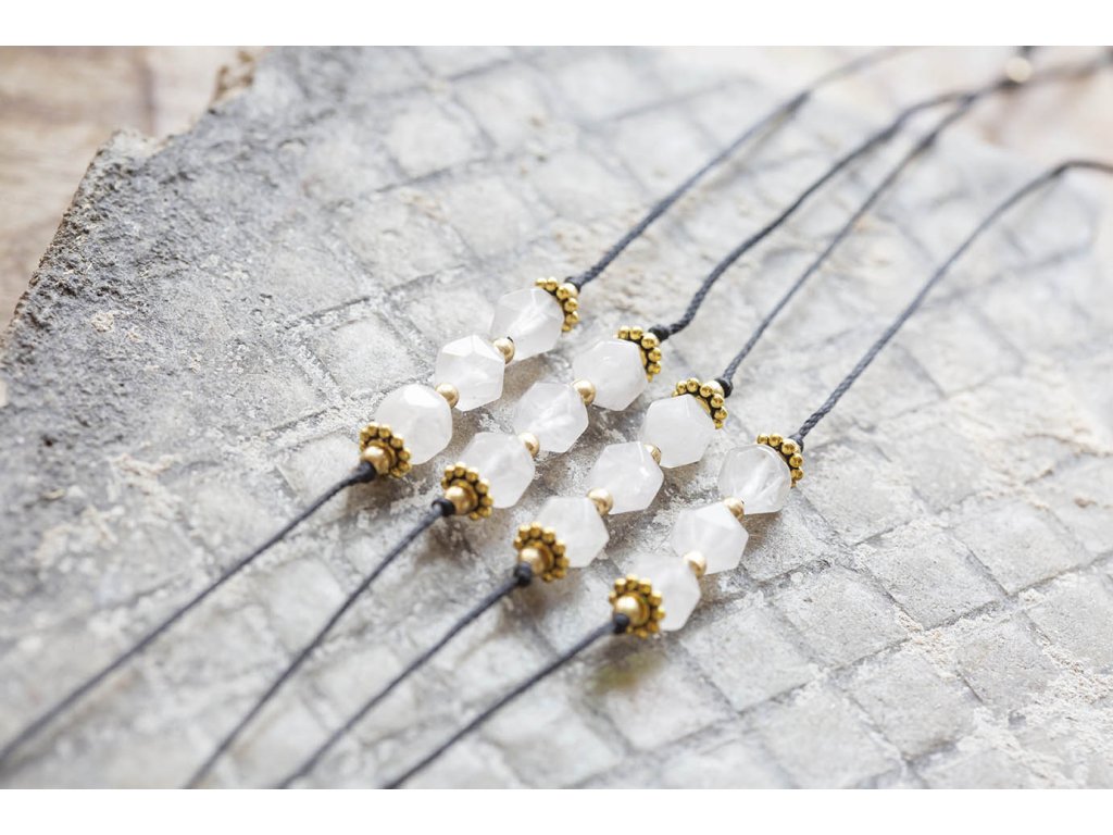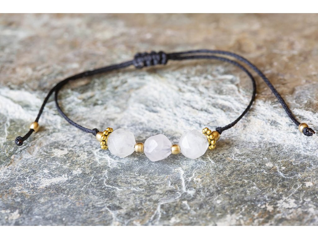 Náramek s růženíny Růženíny s kubickým fasetováním na černé šňůrce tvoří jednoduchý, ale efektní náramek. Růženín je kámen lásky. Pomáhá projevovat city, dodává lásku a krásu, podporuje něžnost, mírnost, přátelskost a nesobeckost. Podněcuje citlivost a vnímavost vůči ostatním i sobě samému, podporuje fantazii, inspiraci a tvořivost a trpělivost. Dává sílu k odpuštění, učí sebeúctě a sebelásce. Délka je nastavitelná pomocí macramé zámečku.Doplňkové parametry