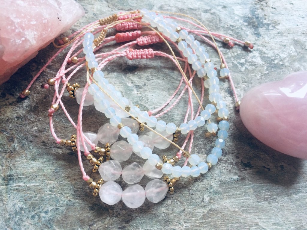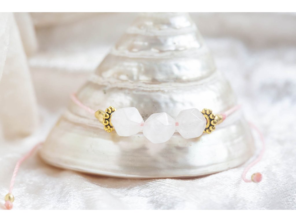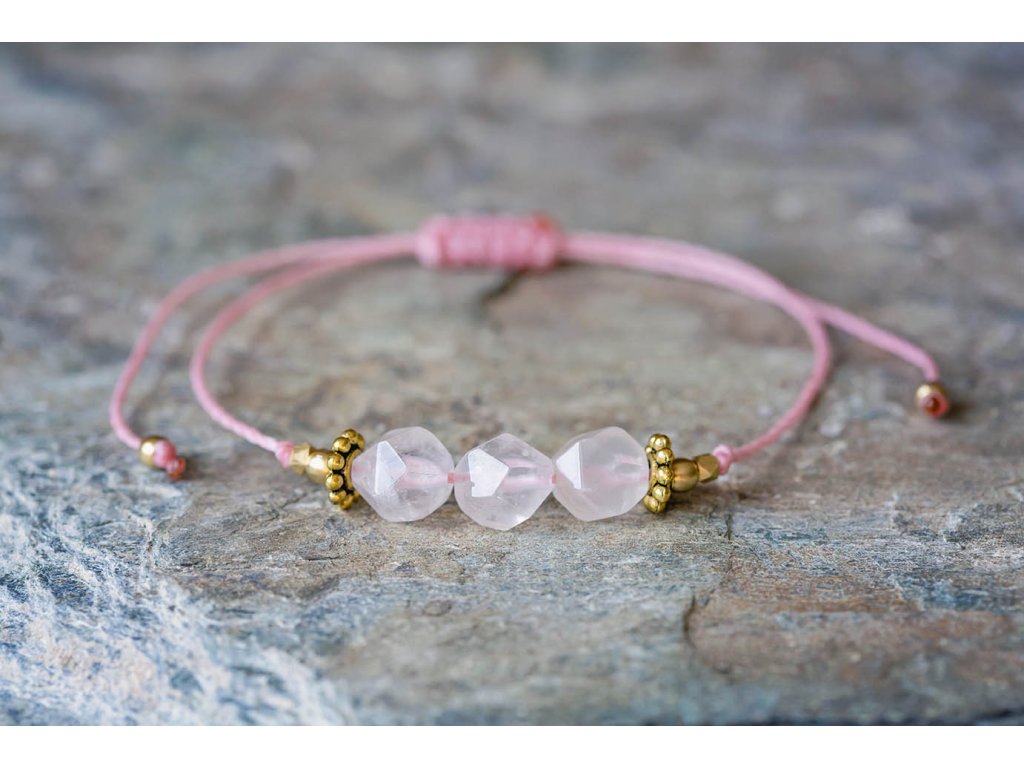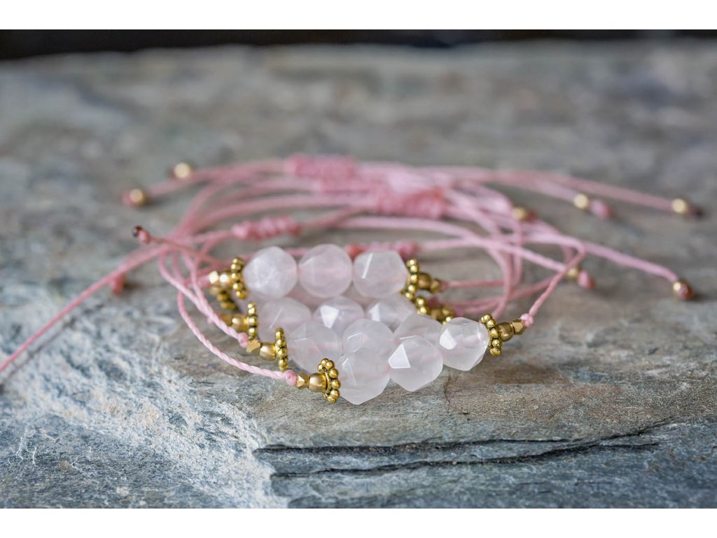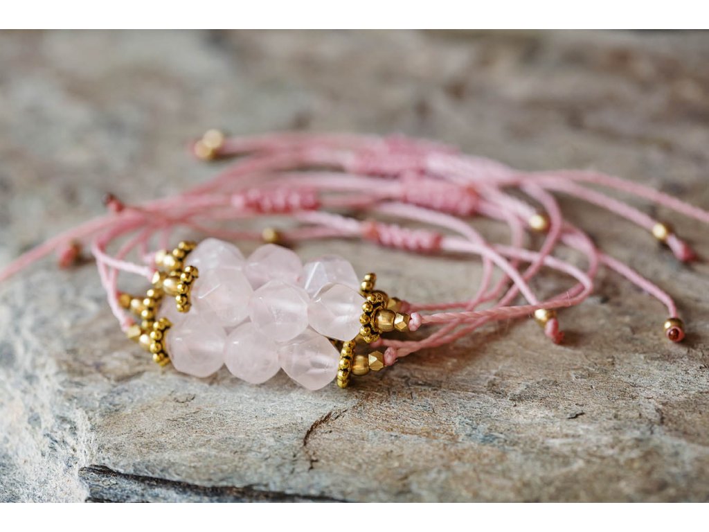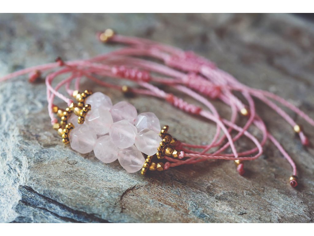 Náramek s růženíny Jemný náramek s netradičně kubicky fasetovanými růženíny. Růženín je kámen lásky. Pomáhá projevovat city, dodává lásku a krásu, podporuje něžnost, mírnost, přátelskost a nesobeckost. Podněcuje citlivost a vnímavost vůči ostatním i sobě samému, podporuje fantazii, inspiraci a tvořivost a trpělivost. Dává sílu k odpuštění, učí sebeúctě a sebelásce. Délka je nastavitelná.Doplňkové parametry
