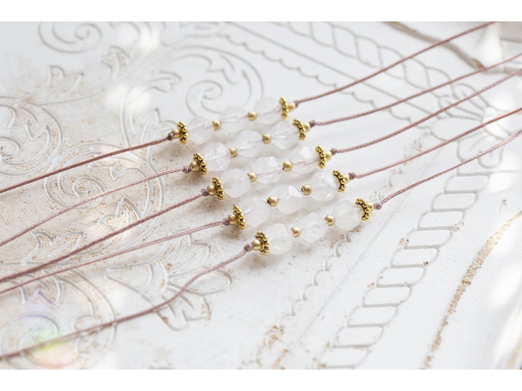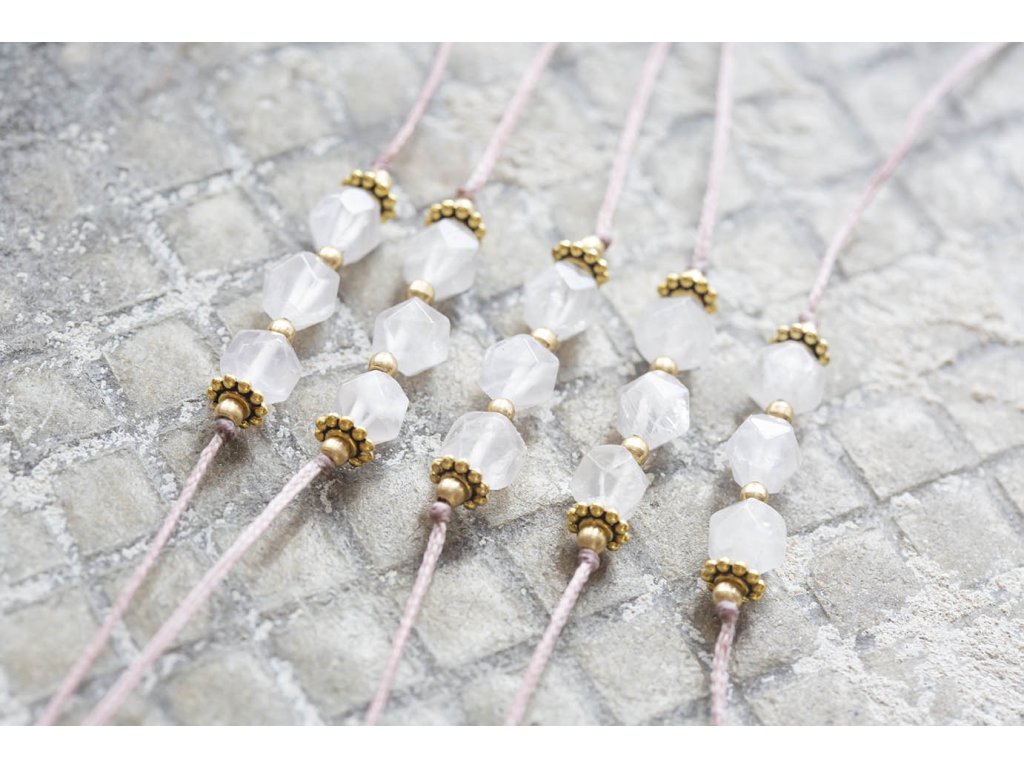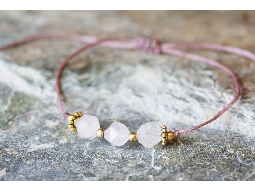 Náramek s růženíny Jemný náramek s kubicky fasetovanými růženíny na starorůžové šňůrce. Růženín je kámen lásky. Pomáhá projevovat city, dodává lásku a krásu, podporuje něžnost, mírnost, přátelskost a nesobeckost. Podněcuje citlivost a vnímavost vůči ostatním i sobě samému, podporuje fantazii, inspiraci a tvořivost a trpělivost. Dává sílu k odpuštění, učí sebeúctě a sebelásce. Velikost nastavitelná pomocí macramé zámečkuDoplňkové parametry