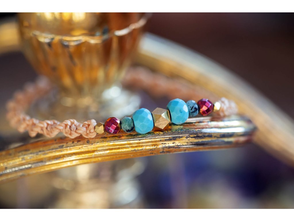 Náramek s tyrkysem Ozdobte se náramkem s tyrkysem plným duchovní síly! Tento náramek se vyznačuje: Tyrkysem: Kámen ochrany. Podporuje klid, mír a intuici. Macramé dvoušroubovice DNA: Symbol života a spojení s vesmírem. Hematit: Kámen ochrany a síly. Pomáhá překonávat překážky a dodává odvahu. Jadeitem: Kámen štěstí a harmonie. Podporuje duchovní růst a moudrost. Mosaznými a skleněnými korálky: Dodávají náramku jedinečný a elegantní vzhled. Vlastnosti drahokamů: Tyrkys: Ochrana, klid, mír, intuice, komunikace Hematit: Ochrana, síla, odvaha, uzemnění, vitalita Jadeit: Štěstí, harmonie, duchovní růst, moudrost, ochrana Náramek s tyrkysem a symbolem DNA je: Ručně vyrobený s láskou Dodávaný v dárkové krabičce Perfektní dárek pro sebe i pro milovnice moře, tyrkysu, macramé, symbolů DNA, duchovního růstu a ochrany Symbol klidu, míru, intuice, síly, odvahy, štěstí, harmonie, moudrosti a ochrany Tip: Náramek skvěle doplní letní oblečení a plážové outfity, ale také se hodí k běžnému oblečení pro dodání duchovního růstu. Proč si vybrat náramek s tyrkysem a symbolem DNA? Podporujete ruční práci a lokální řemeslo. Vlastníte originální a jedinečný kousek. Nosíte šperk s hlubokou symbolikou a duchovním významem. Kupujete si dárek vyrobený s láskou a péčí. Ozdobte se náramkem s tyrkysem a symbolem DNA a spojte se s mořem, ochranou a duchovním růstem!Doplňkové parametry