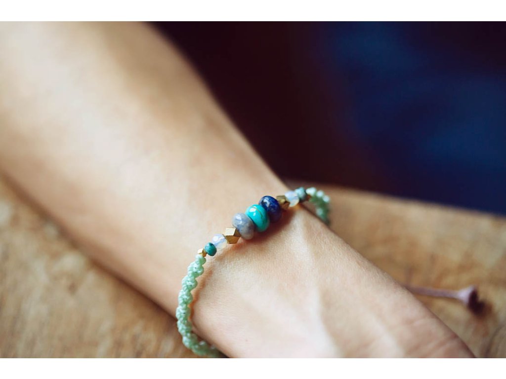 Náramek s tyrkysem Hledáte krásný a jedinečný náramek, který má také hluboký duchovní význam? Pak je tento náramek mentolová macramé dvoušroubovice s tyrkysem, sodalitem, opalitem, jadeitem a korálky od českých sklářů perfektní volbou pro vás! Tento náramek je vyroben z ručně pletené mentolové macramé šňůry a ozdoben drahokamy a skleněnými korálky: Sodalit: Podporuje intuici, kreativitu a klid. Pomáhá harmonizovat emoce a odbourávat stres. Tyrkys: Podporuje ochranu, štěstí a intuici. Pomáhá komunikovat s duchovním světem. Opalit: Podporuje optimismus, radost a duchovní růst. Pomáhá otevírat srdce a zvyšovat sebevědomí. Jadeit: Podporuje klid, mír a harmonii. Dodává sílu a vytrvalost. Korálky od českých sklářů: Dodávají náramku krásu a originalitu. Dvoušroubovice je starobylý symbol, který se používá k ochraně a harmonizaci energie. Náramek s tyrkysem je: Ručně vyrobený s láskou Dodávaný v dárkové krabičce Perfektní dárek pro sebe i pro milovnice šperků, drahokamů a duchovních praktik Symbol krásy, harmonie, ochrany a duchovní síly Tip: Náramek skvěle doplní oblečení ve stylu boho, ale také se hodí k běžnému oblečení pro dodání nádechu elegance a spirituality. Proč si vybrat náramek mentolová macramé dvoušroubovice s tyrkysem, sodalitem, opalitem, jadeitem a korálky od českých sklářů? Podporujete ruční práci a lokální řemeslo. Vlastníte originální a jedinečný kousek. Nosíte šperk s hlubokou symbolikou a duchovním významem. Kupujete si dárek vyrobený s láskou a péčí. Ozdobte se tímto krásným náramkem a užijte si jeho blahodárné účinky! Velikost nastavitelná pomocí macramé zámečku.Doplňkové parametry