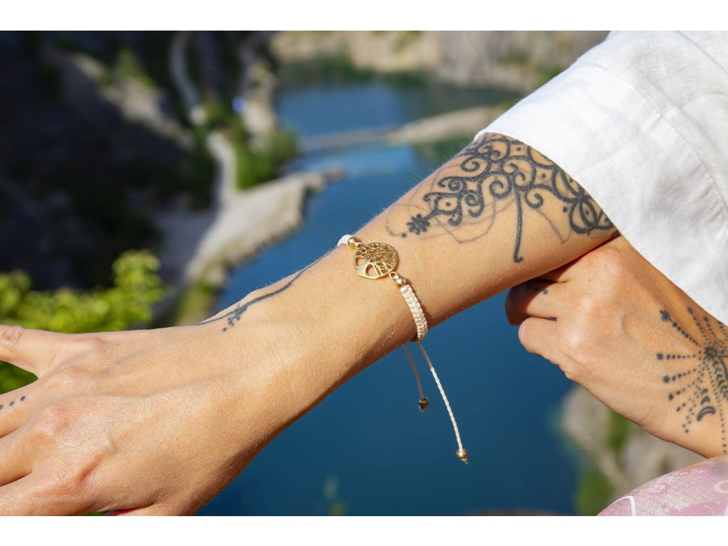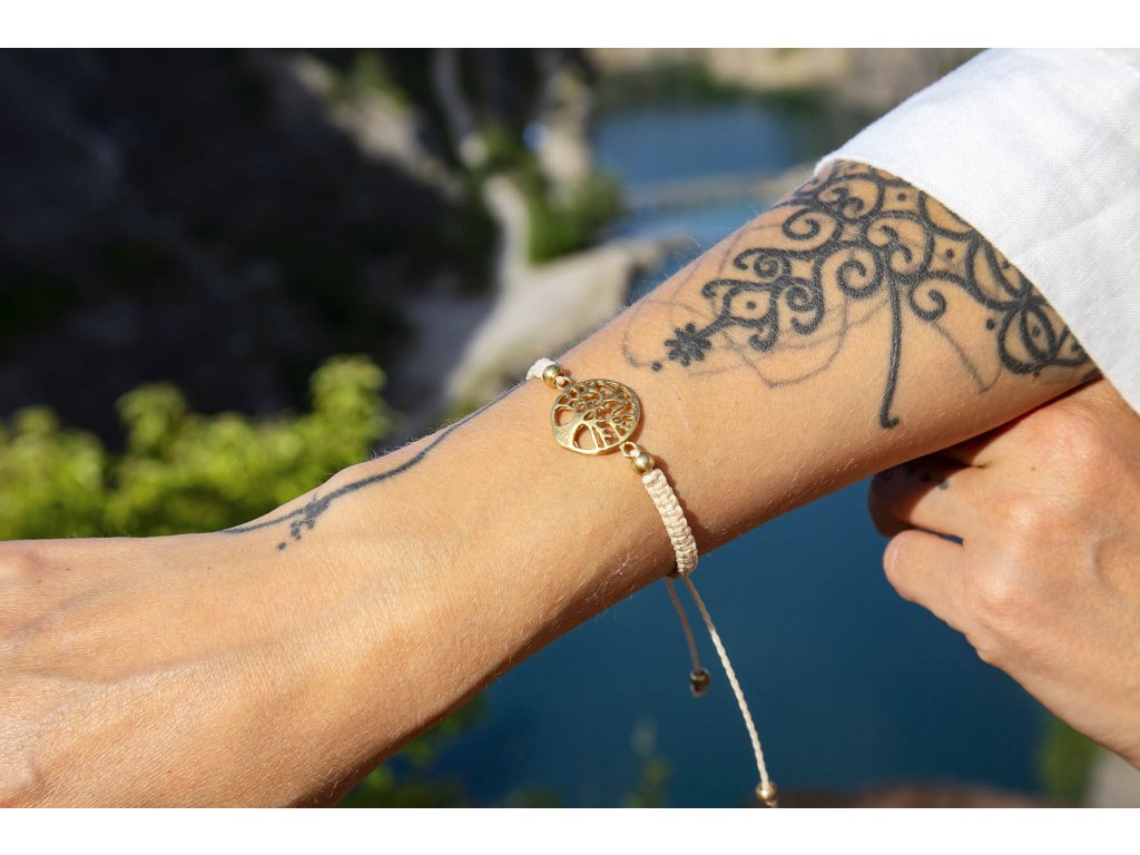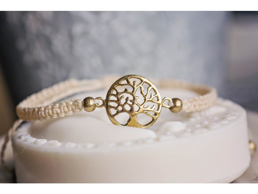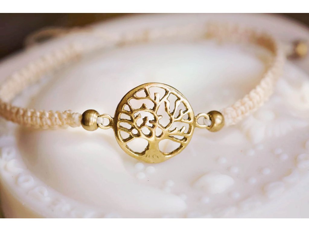 Náramek strom života Krásný macramé náramek s mosazným stromem života. Strom života je starodávný symbol mnoha kultur. Symbolizuje sílu přírody a propojení člověka nejen s její energií, ale i celým vesmírem, jehož jsme součástí. Silné kořeny stromu naznačují, že i člověk potřebuje silné kořeny v podobě své rodiny a blízkých, o které se může opřít, když přijde vichřice. Přináší svému nositeli hojnost, sílu, plodnost, stabilitu a tvořivost. Velikost nastavitelná pomocí macramé zámečku.Doplňkové parametry