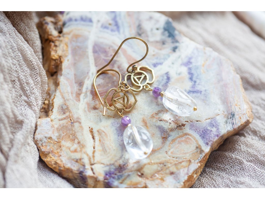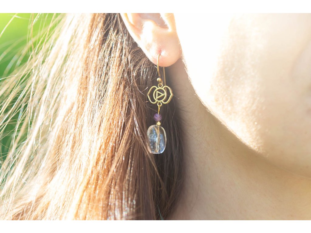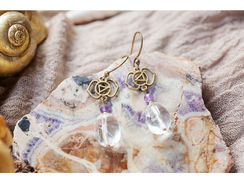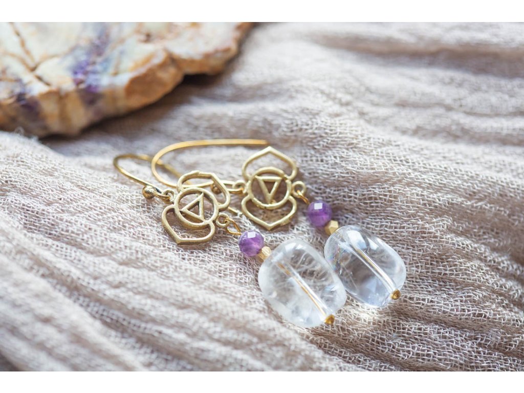 Náušnice Ajna Náušnice Ajna dostali jméno po šesté čakře v jazyce Sánskrtu, prastarém jazyce pocházejícím ze staré Indie. Čakra Ajna leží v oblasti třetího oka, na obličeji by se dala lokalizovat mezi obočím. Její oblíbené kameny jsou právě křišťál a ametyst.Doplňkové parametry