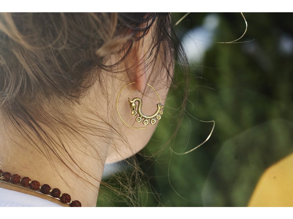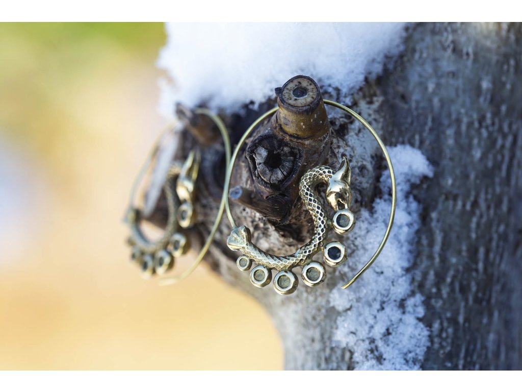 Náušnice dráček ve spirále Krásní mosazní dráčci ve spirále tvoří nevšední náušnice. Průměr cca 4 cm Hmotnost jedné náušnice cca 4