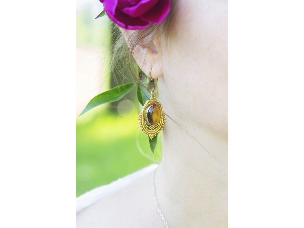 Náušnice drahokam v ornamentu Zdobné náušnice s velkým drahokamem zasazeným do mosazného ornamentu. Na výběr máme lapis lazuli, ametyst a tygří oko. Ametyst je kamenem čistoty ducha a meditace. Pomáhá nám v sobě objevovat sebeobětování, lásku, pokoru a nezištnost. Těmito vlastnostmi nám otevírá cestu do jiných dimenzí bytí. Je to kámen inspirace, směřuje naše myšlení k tvořivé práci a probouzí v nás intuici. Lapis lazuli je jedinečný drahokam, který pomáhá a podporuje svého nositele v mnoha ohledech. Navozuje vnitřní klid a mír, podporuje radost, odvahu, lásku, poctivost a kreativitu. Upevňuje mezilidské vztahy a zlepšuje komunikaci. Zvyšuje sebevědomí a podporuje osobní růst. Mírní strach, vztek a agresivitu. Má blahodárný vliv na paměť a úsudek. Dokáže odstraňovat stres a taky být velkým pomocníkem při detoxikaci organismu, například při dietě. Tygří oko je ochranný kámen, která se používá jako talisman před všemi formami nebezpečí. Propojuje sluneční a zemskou energii a tím pomáhá uzemnit lidi, kteří ztratili spojení s realitou a zároveň podporuje duchovní růst těch materialisticky zaměřených. Je to hřejivý kámen, podporuje to energie v těle a dodává sílu, přitahuje peníze a prosperitu. Pomáhá s odbouráním závislostí na druhých uznáním vlastní hodnoty. Mírní deprese. Délka cca 5 cm Hmotnost jedné náušnice cca 5 gBuďte první, kdo napíše příspěvek k této položce.