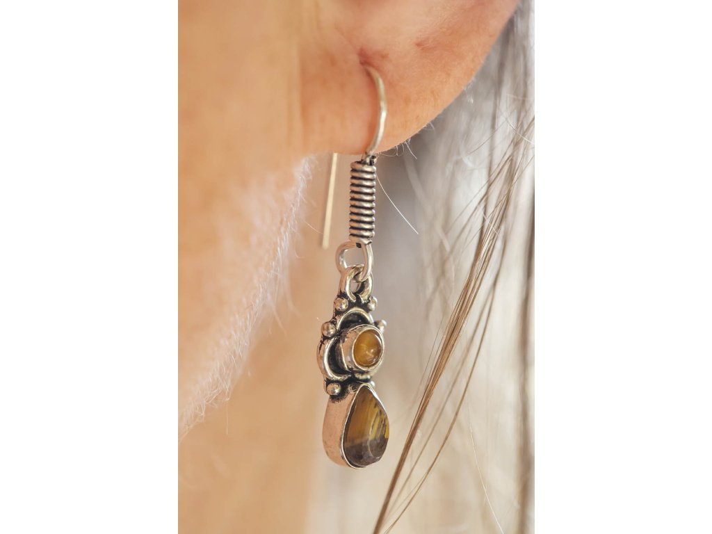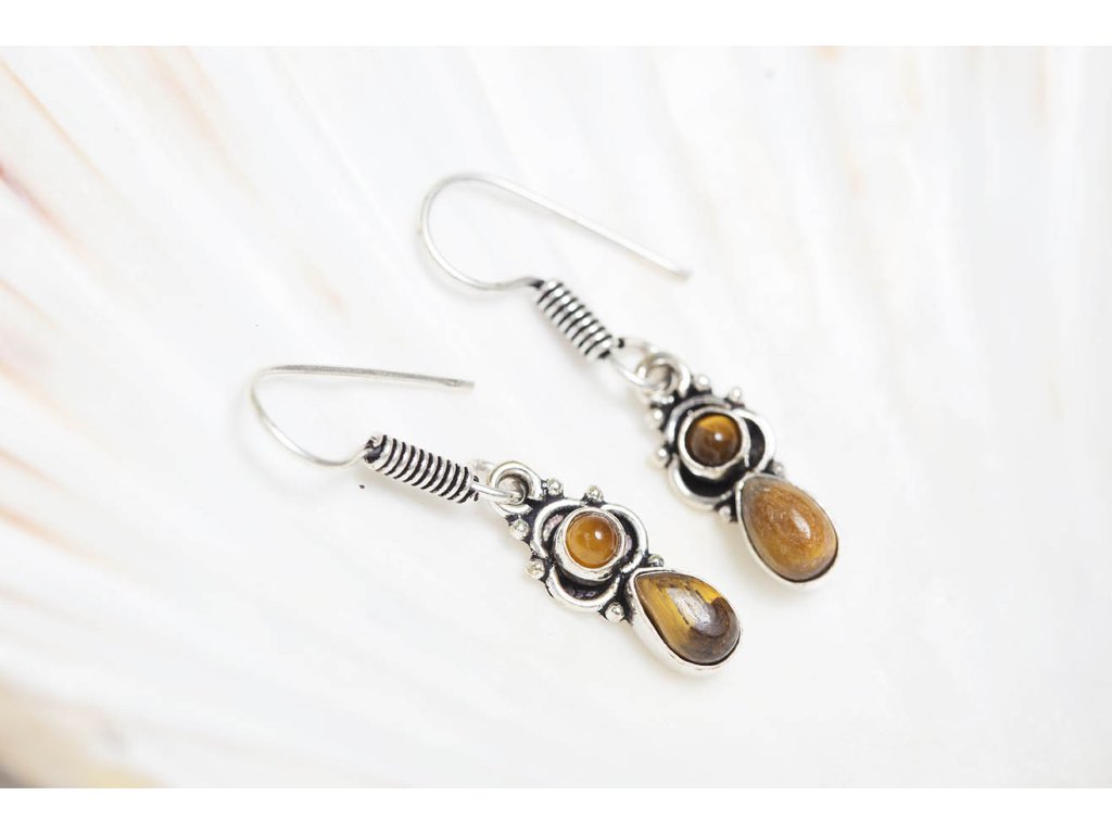 Náušnice dva drahokamy Tygří oko