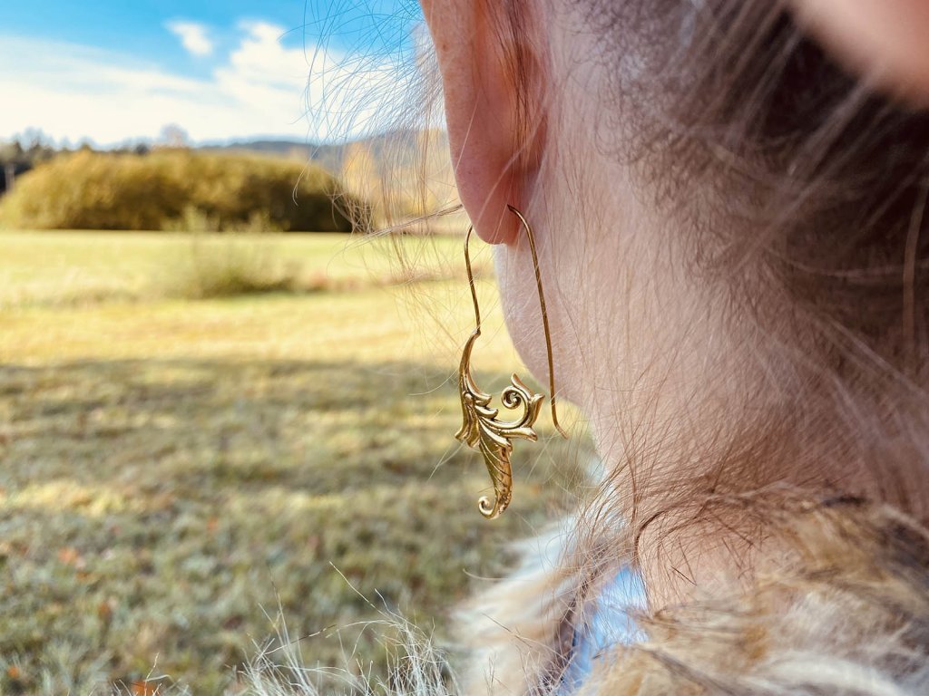 Náušnice elfí krása Ve stínu hlubokého lesa i v betonu města budete nepřehlédnutelná s těmito mosaznými náušnicemi elfí krása. Neváhejte a kupte je, máme jenom jedny! Délka cca 6,5 cm Hmotnost jedné náušnice cca 6 gDoplňkové parametry