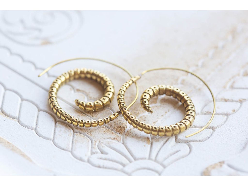 Náušnice fauní spirály Mosazné náušnice žížaly. Průměr cca 3,5 cm Hmotnost jedné náušnice cca 6 g