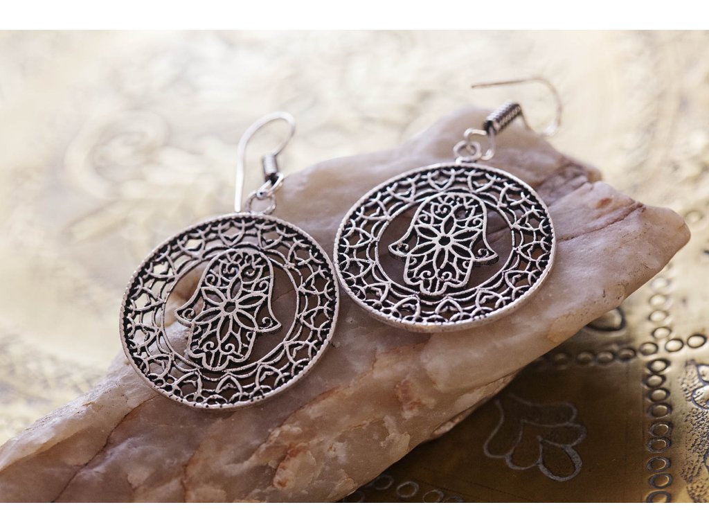 Náušnice hamsy v mandale Bílý kov Hamsa
