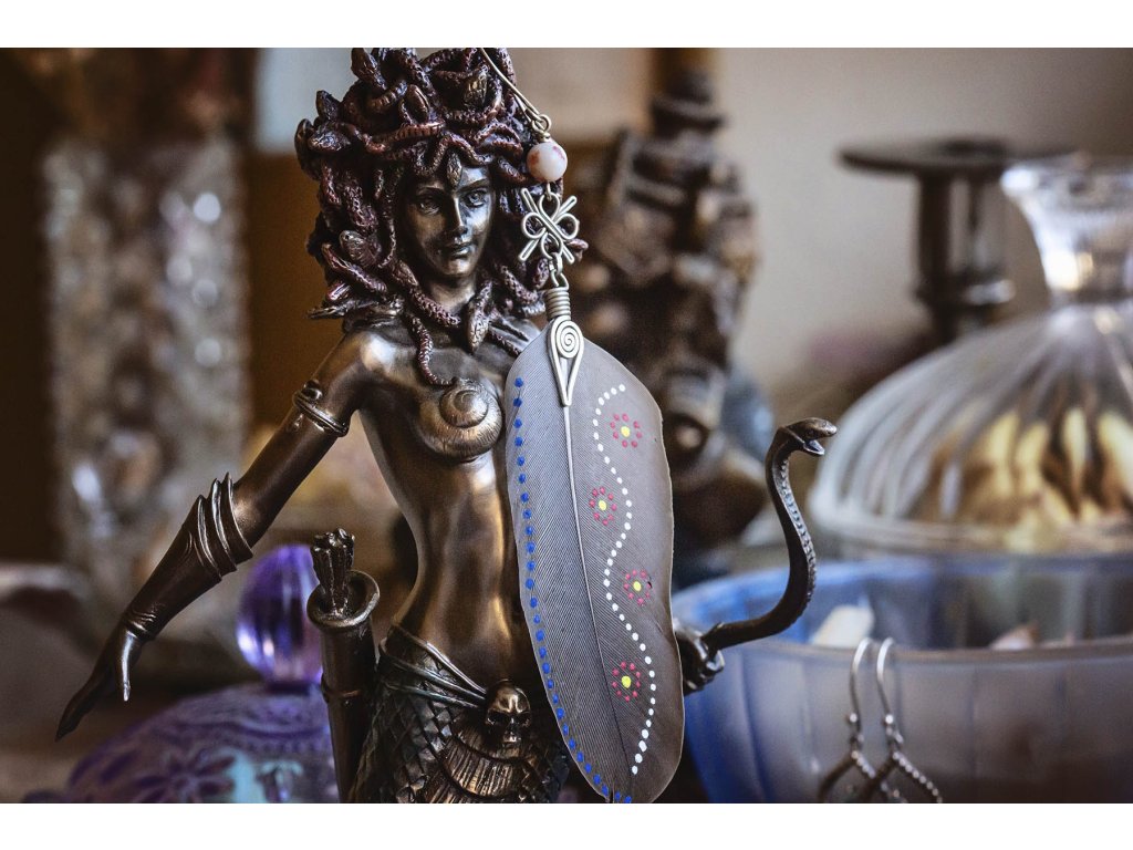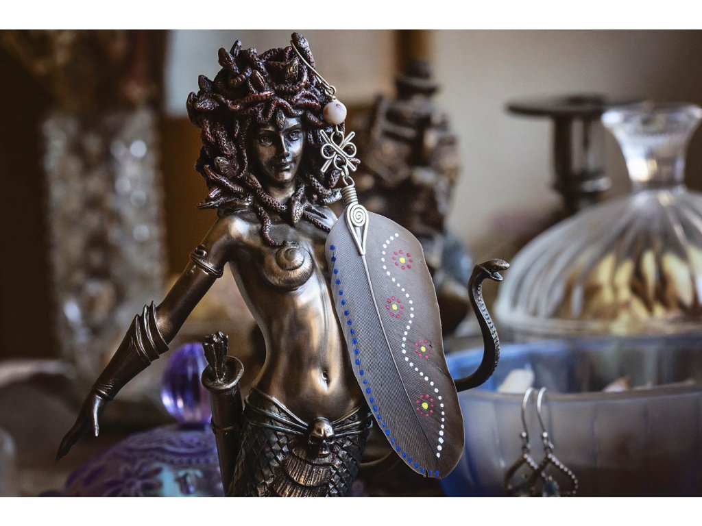 Náušnice indiánské peříčko s jaspisem Zdobená solitérní náušnice indiánské peříčko s jaspisem, s alpakovým ornamentem a spirálou. Šperk byl navržen a ručně vytvořen v dílně našeho milého přítele a kolegy, kečuánského indiána Arona. Jeho tvorba vychází z tradičních peruánských technik výroby šperků. Jaspis přináší do života klid, pomáhá ve stresu, uvádí do rovnováhy duševní i tělesnou stránku. Umožňuje dosahování cílů, tím že podporuje pronikavost vhledu na podstatu problému. Zvyšuje organizační schopnosti a schopnost dělat rychlá a správná rozhodnutí. Chrání před negativní energií. Je výborným pomocníkem v pracovním i soukromém životě. Délka cca 12,5 cm Hmotnost náušnice cca 2 gDoplňkové parametry