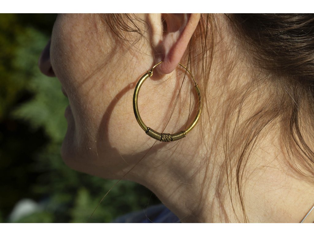 Náušnice kruhy tribal Tyto mosazné tribal náušnice ve tvaru kruhu vás ozdobí pro každou příležitost. Průměr cca 4,3 cm Hmotnost jedné náušnice cca 4 gDoplňkové parametry