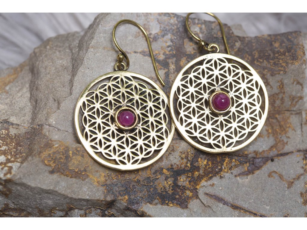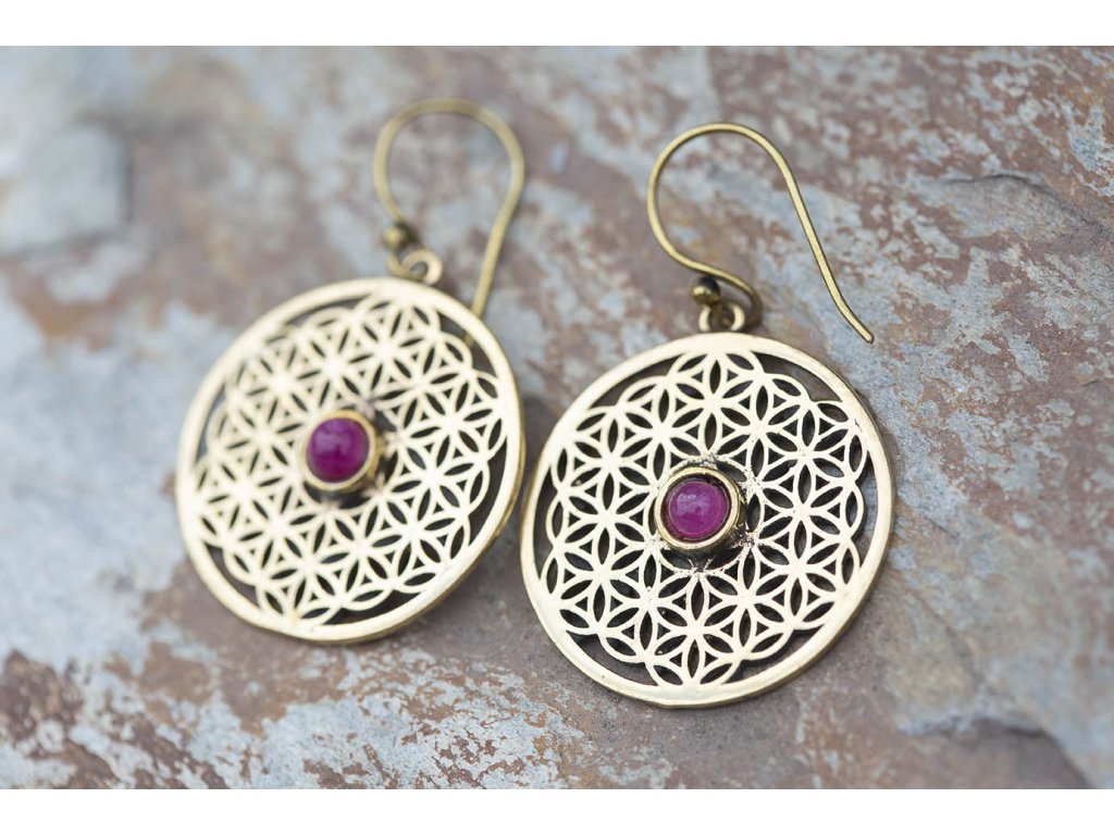 Náušnice květ života s drahokamem Překrásné mosazné náušnice květ života s drahokamem uprostřed. Na výběr je fialový indický rubín, černý onyx, modrý lapis lazuli, červený korál a fialový ametyst. Květ života – symbol posvátné geometrie je nalézán v různých místech mnoha kultur na celé planetě. Léčí tělo i duši, harmonizuje osobnost, dodává energii, pomáhá napojit se na božskou sílu, na vesmírné světlo. Ametyst je kamenem čistoty ducha a meditace. Pomáhá nám v sobě objevovat sebeobětování, lásku, pokoru a nezištnost. Těmito vlastnostmi nám otevírá cestu do jiných dimenzí bytí. Je to kámen inspirace, směřuje naše myšlení k tvořivé práci a probouzí v nás intuici. Rubín je vyhledávaný drahokam. Je to lék proti náladovosti, podporuje intuici a sebevyjádření, dodává dobrou náladu. Vládne životodárnou kreativní energií vedoucí k očištění a proměně. Vytváří harmonické spojení mezi tělesnou a duševní láskou, mezi sexualitou a duchovnem. Onyx je ochranný kámen, který odráží negativitu vědomě namířenou proti vám. Chrání život, dodává sílu, pomáhá v těžkých obdobích, při mimořádném fyzickém a citovém vypětí. Zaměřuje energii jedním směrem, přináší ráznost a vytrvalost, dovoluje svému nositeli stát se pánem svého osudu. Poskytuje poučení z minulosti, zvyšuje sebedůvěru a sebekontrolu, léčí stará traumata ovlivňující současný život a snižuje strach a obavy. Udržuje v těle rovnováhu energií jin a jang. Lapis lazuli je jedinečný drahokam, který pomáhá a podporuje svého nositele v mnoha ohledech. Navozuje vnitřní klid a mír, podporuje radost, odvahu, lásku, poctivost a kreativitu. Upevňuje mezilidské vztahy a zlepšuje komunikaci. Zvyšuje sebevědomí a podporuje osobní růst. Mírní strach, vztek a agresivitu. Má blahodárný vliv na paměť a úsudek. Dokáže odstraňovat stres a taky být velkým pomocníkem při detoxikaci organismu, například při dietě. Korál je považován za nejsilnější ochranný kámen. Očisťuje nás od zatěžujících a temných myšlenek, negativních představ a pocitů. Povzbuzuje v nás pozitivní myšlení a cítění, zachovávání duševního řádu a čistoty. V barvě červené je symbolem lásky, oddanosti a pokory, soucitu a sounáležitosti s celkem. Je symbolem mateřství. Průměr cca 2,5 cm Hmotnost jedné náušnice cca 4 gBuďte první, kdo napíše příspěvek k této položce.