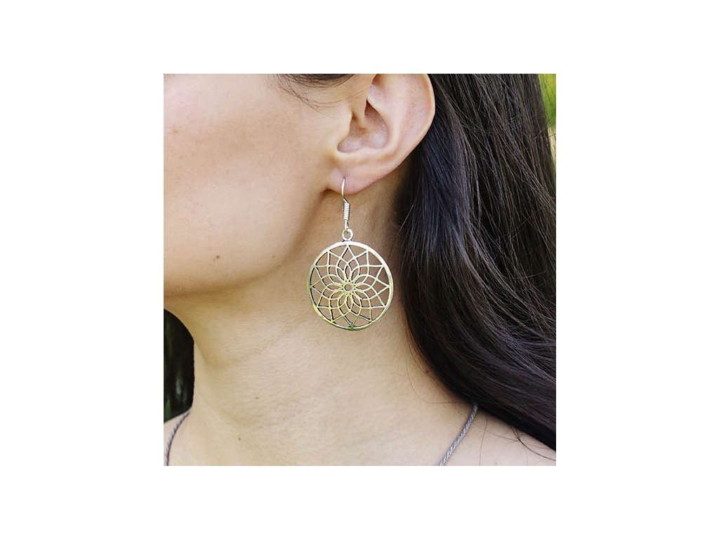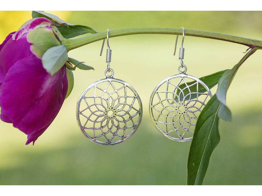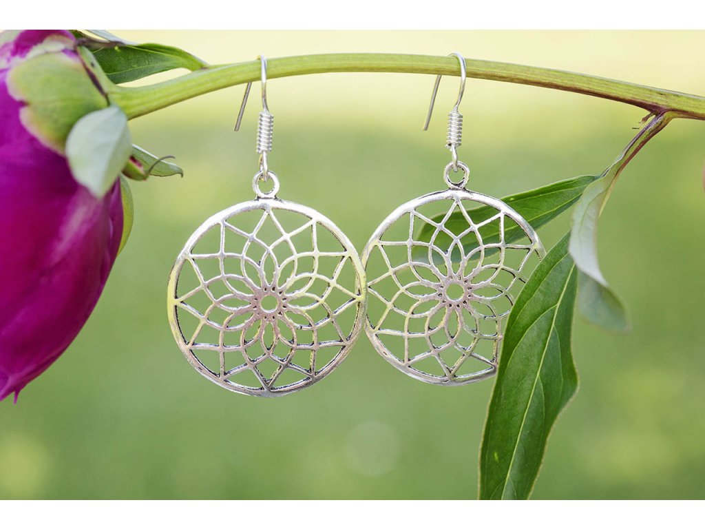 Náušnice květinová mandala Bílý kov